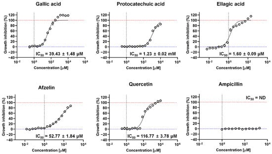 2.5. Growth Inhibition Activity of Bioactive Compounds