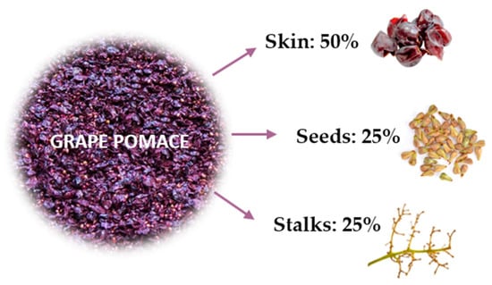 - Peixoto, C.M.; Dias, M.I.; Alves, M.J.; Calhelha, R.C.; Barros, L.; Pinho, S.P.; Ferreira, I.C.F.R. Grape Pomace as a Source of Phenolic Compounds and Diverse Bioactive Properties. Food Chem. 2018, 253, 132–138. [Google Scholar] [CrossRef]