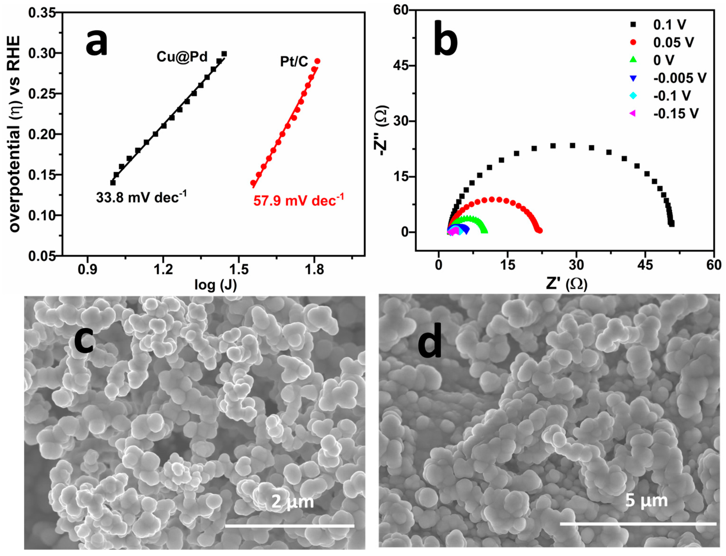 Cu@Pd/PGE | 0.5 M H2SO4 | 150 | 33.8 | Present study |