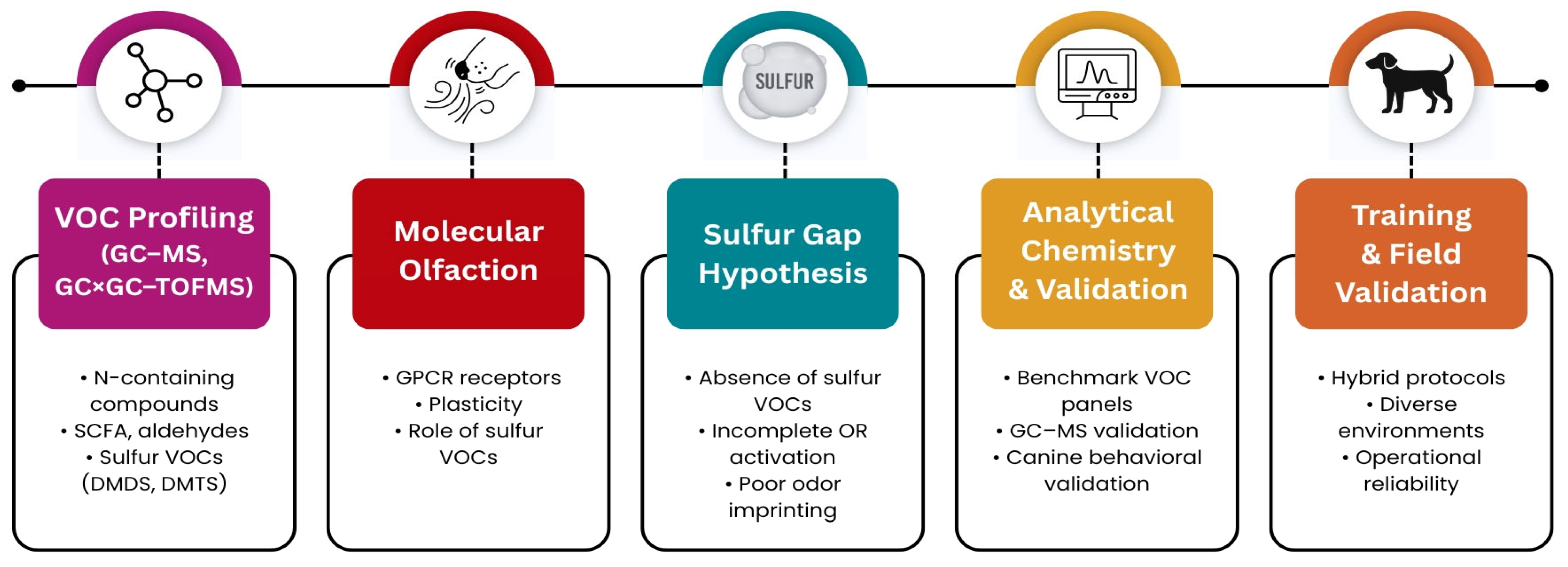Synthetic Cadaver Odorants and the Sulfur Gap: Linking Chemistry and Canine Olfaction in Human Remains Detection