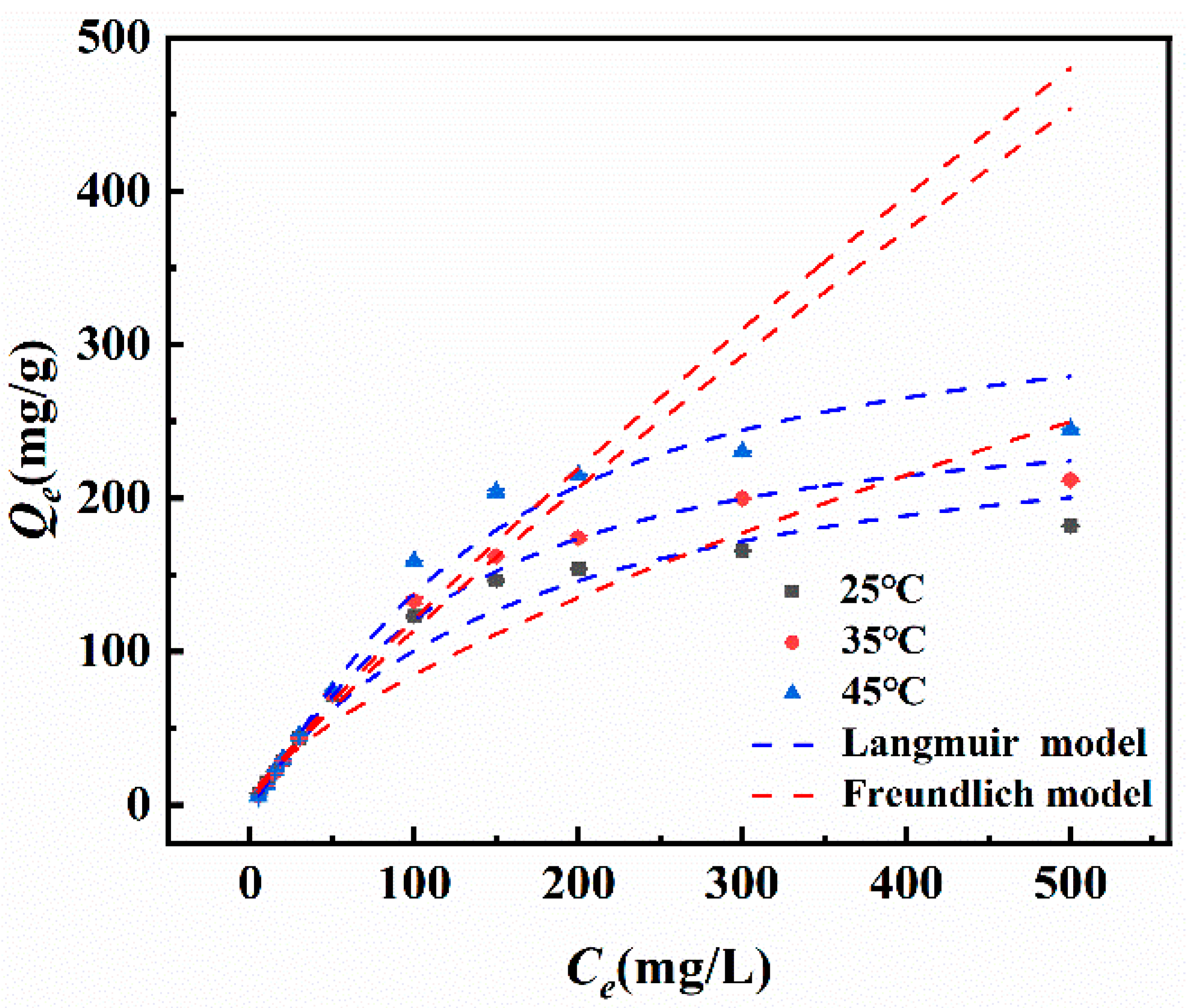 Temperature (°C) | Langmuir | Freundlich | ||||