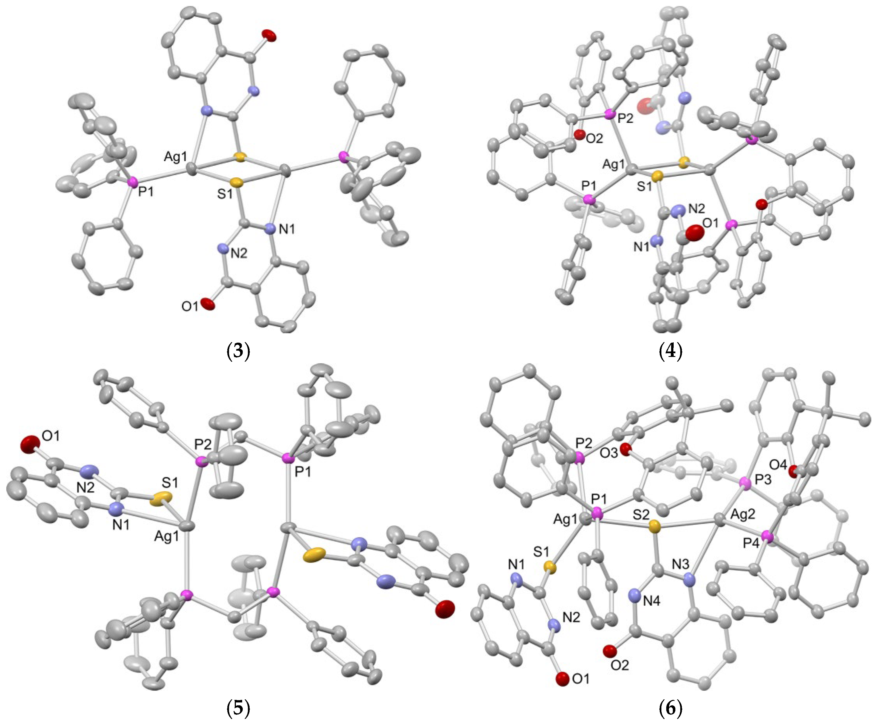 2.1. Synthesis, Crystal Structures and Characterization of Complexes 1–6