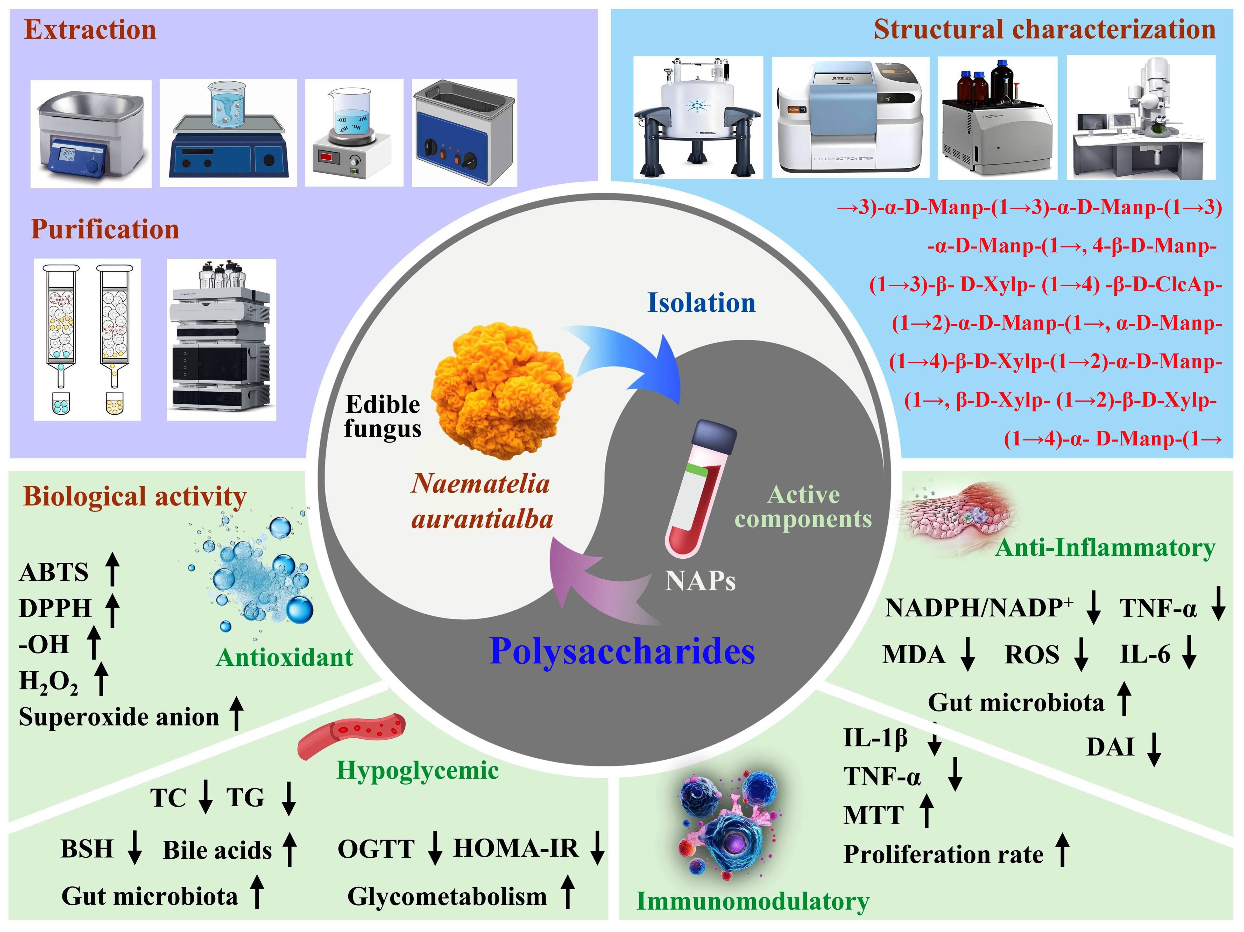 Chicago/Turabian StyleWu, Ri-Na, Yun-Yang Zhu, Run-Hui Ma, Zhi-Jing Ni, Xiao-Juan Deng, Kiran Thakur, and Zhao-Jun Wei. 2025. "Purification, Structural Characteristics, Bioactive Properties, and Applications of Naematelia aurantialba Polysaccharides: A Comprehensive Review" Molecules 30, no. 20: 4073. https://doi.org/10.3390/molecules30204073