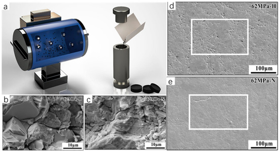 (a) Schematic diagram of low-temperature grinding and sintering. Reproduced from ref. [21] with permission. Copyright 2018 American Chemical Society. (b) SEM image of fracture morphology of Cu2Se sintered in 62 MPa H2; (c) SEM image of fracture morphology of Cu2Se sintered in 62 MPa N2; (d) SEM image of surface morphology of Cu2Se sintered in 62 MPa H2; (e) surface morphology of Cu2Se sintered in 62 MPa N2 SEM image. Reproduced from ref. [18] with permission. Copyright 2021 Elsevier.