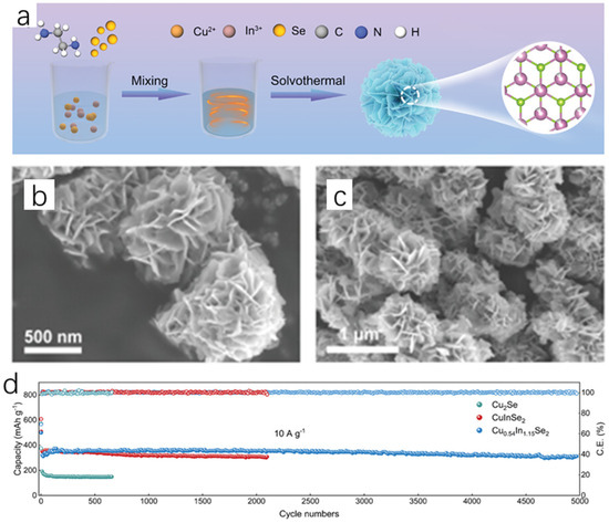- Zhu, K.; Wei, S.; Zhou, Q.; Chen, S.; Lin, Y.; Zhang, P.; Cao, Y.; Wang, C.; Wang, Y.; Xia, Y.; et al. Interface Regulation of Cu2Se via Cu-Se-C Bonding for Superior Lithium-Ion Batteries. Nano Res. 2023, 16, 2421–2427. [Google Scholar] [CrossRef]