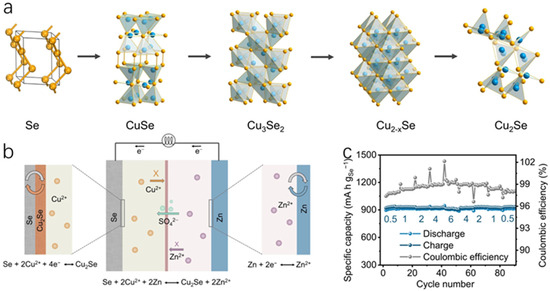 - Zhang, J.; Zhang, X.; Xu, C.; Yan, H.; Liu, Y.; Xu, J.; Yu, H.; Zhang, L.; Shu, J. Four-Electron Transfer Reaction Endows High Capacity for Aqueous Cu–Se Battery. Adv. Energy Mater. 2022, 12, 2103998. [Google Scholar] [CrossRef]