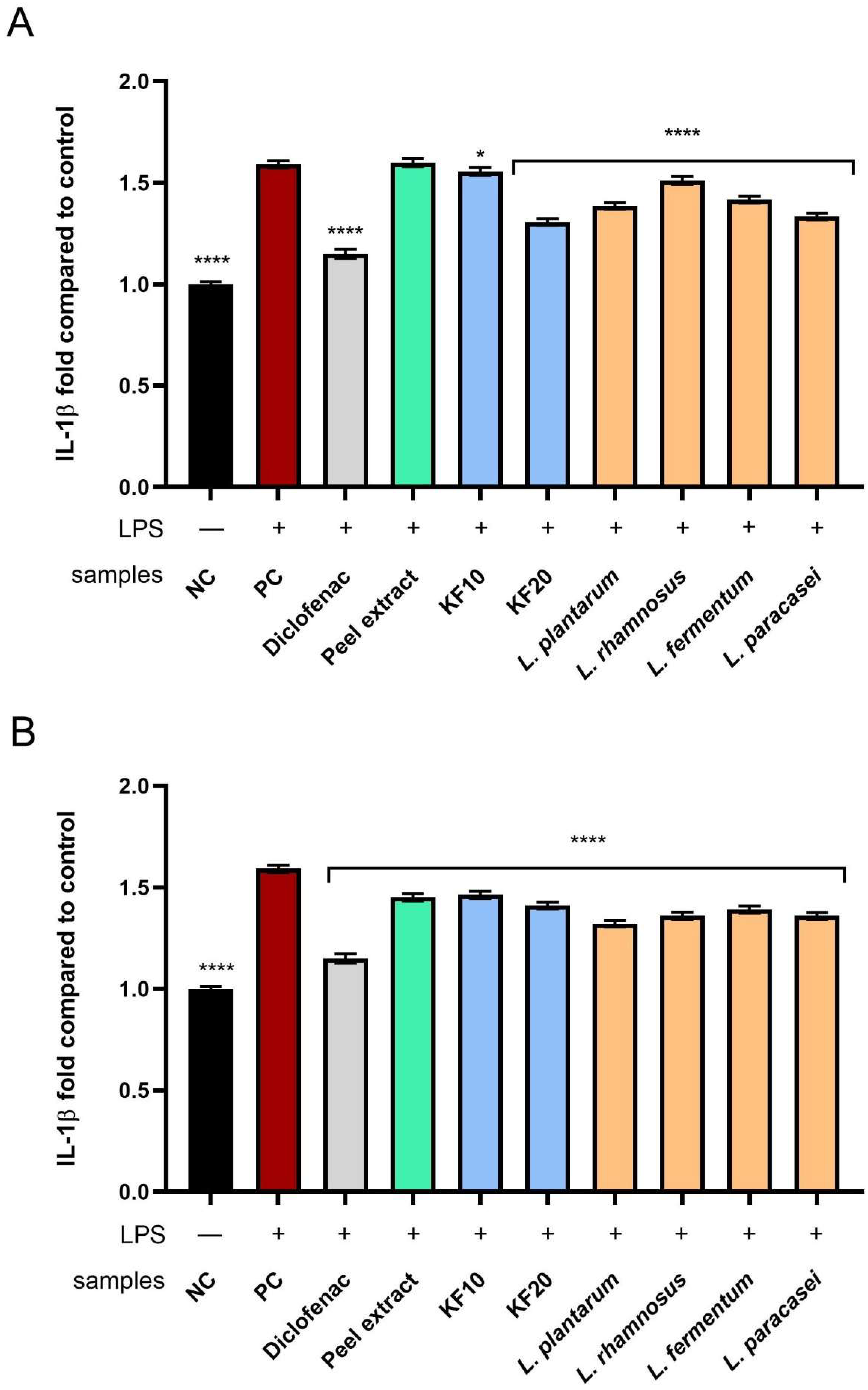 L. paracasei displayed the most pronounced stimulatory effects, particularly at intermediate concentrations. As with peel-derived samples,