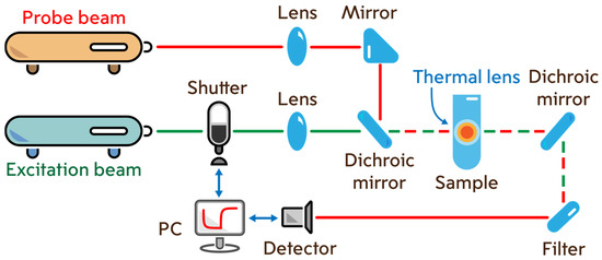 - Ivshukov, D.A.; Mikheev, I.V.; Volkov, D.S.; Korotkov, A.S.; Proskurnin, M.A. Two-Laser Thermal Lens Spectrometry with Signal Back-Synchronization. J. Anal. Chem. 2018, 73, 407–426. [Google Scholar] [CrossRef]