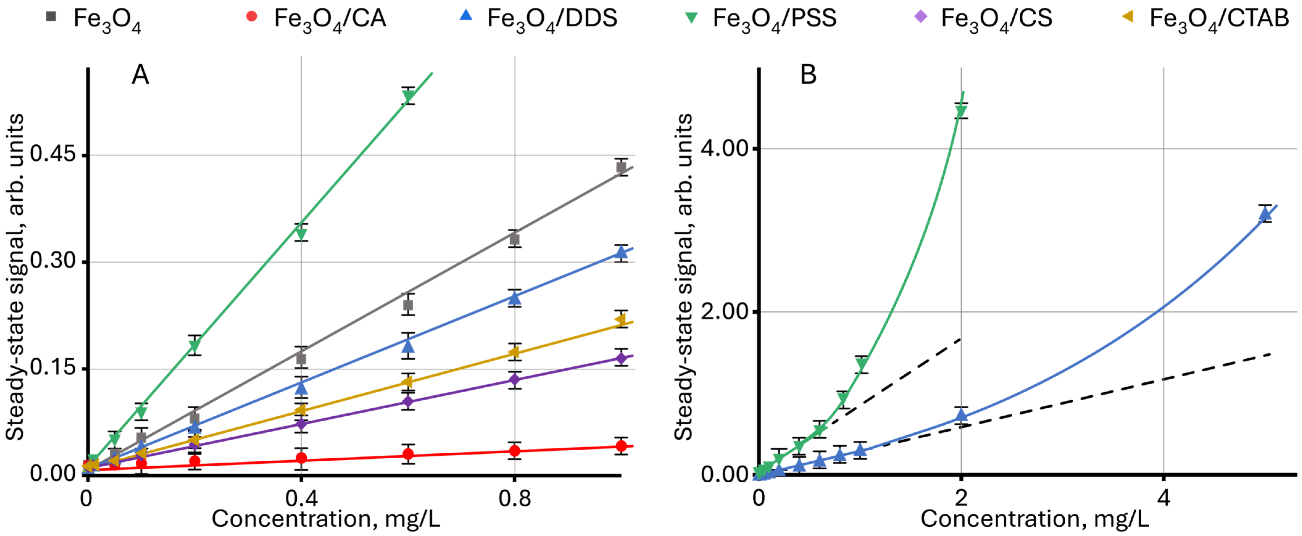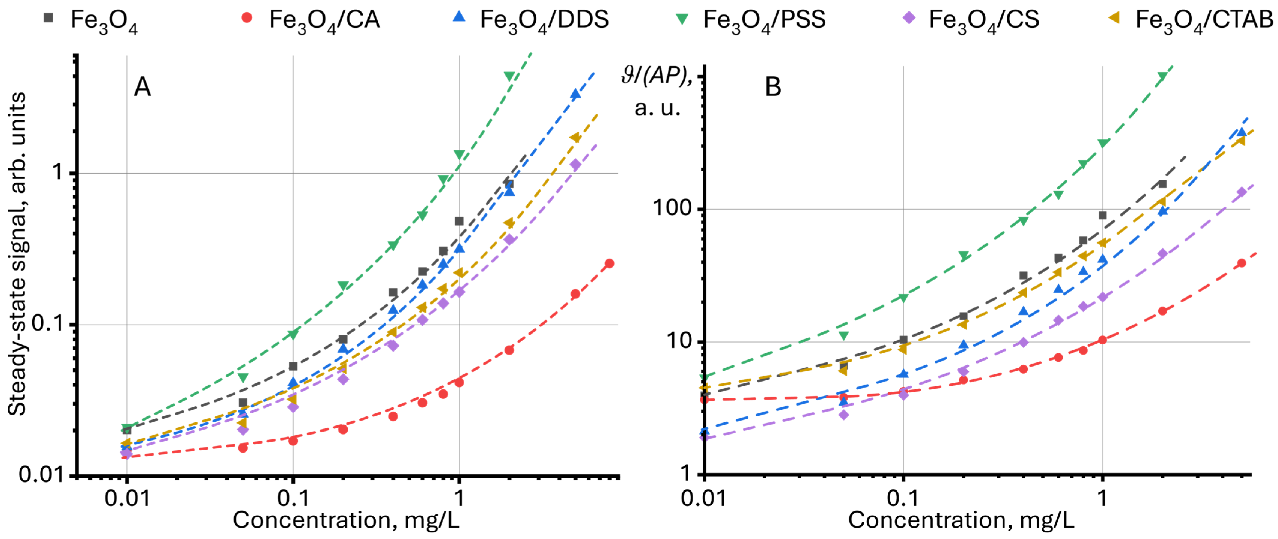 3.2. Preparation Aqueous Dispersions of Modified Magnetite Nanoparticles