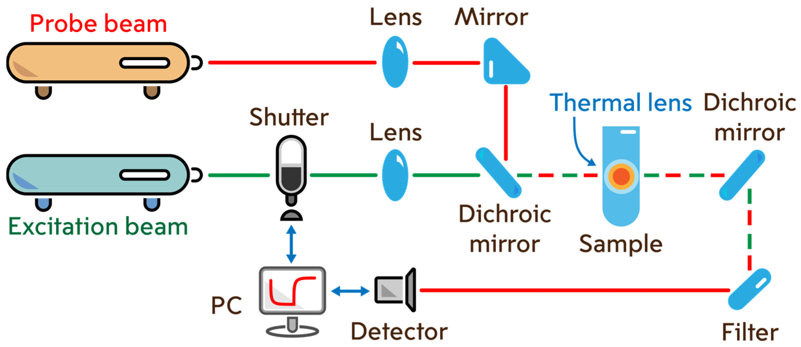 - Skogerboe, K.J.; Yeung, E.S. Single laser thermal lens detector for microbore liquid chromatography based on high-frequency modulation. Anal. Chem. 1986, 58, 1014–1018. [Google Scholar] [CrossRef]