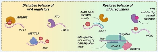 - Li, X.; Ma, S.; Deng, Y.; Yi, P.; Yu, J. Targeting the RNA m6A modification for cancer immunotherapy. Mol. Cancer 2022, 21, 76. [Google Scholar] [CrossRef] [PubMed]