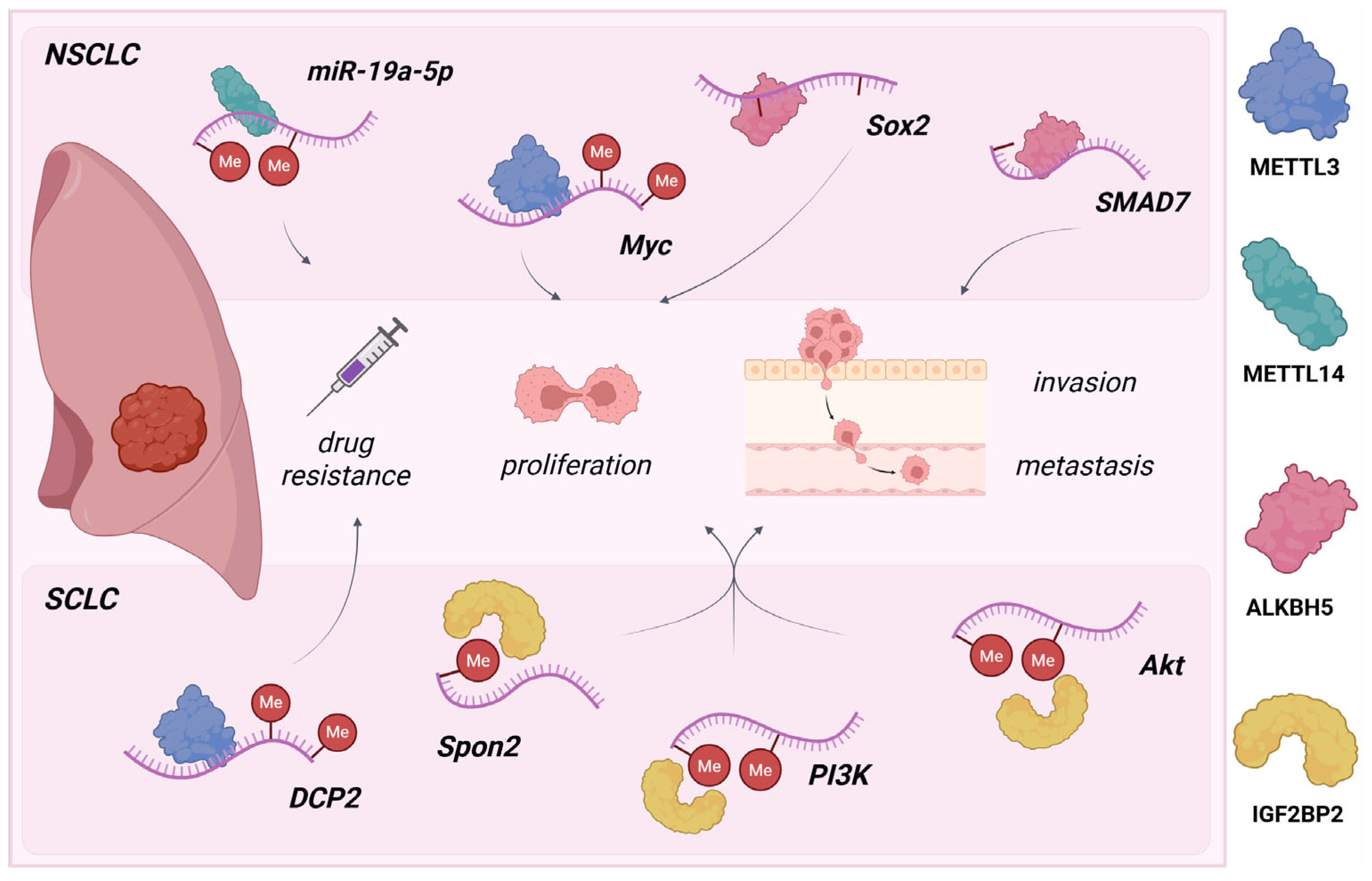 - Liu, C.; Ren, Q.; Deng, J.; Wang, S.; Ren, L. c-MYC/METTL3/LINC01006 positive feedback loop promotes migration, invasion and proliferation of non-small cell lung cancer. Biomed. J. 2024, 47, 100664. [Google Scholar] [CrossRef] [PubMed]