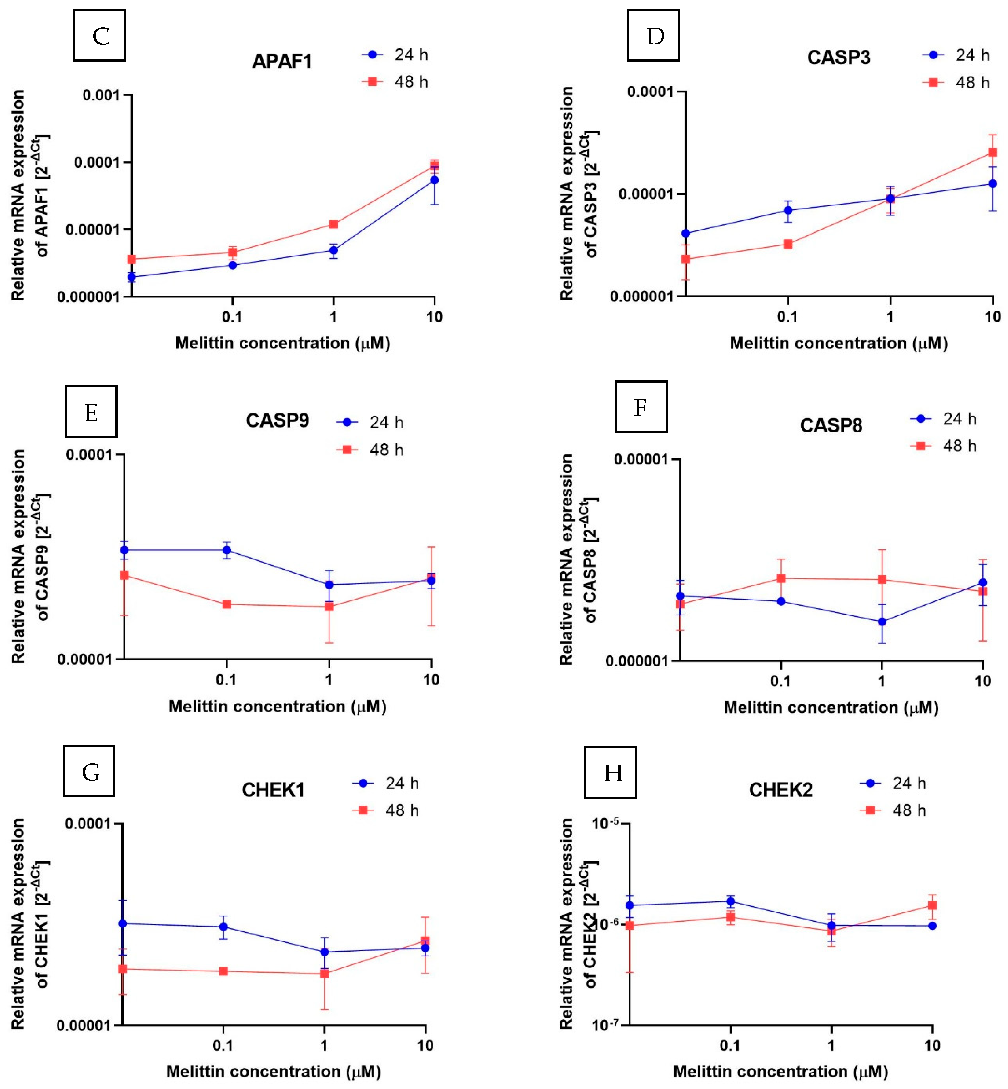 Chicago/Turabian StyleStela, Maksymilian, Michał Ceremuga, Natalia Cichon, Tomasz Poplawski, Marcin Podogrocki, Leslaw Gorniak, and Michał Bijak. 2025. "Pro-Apoptotic and Cytotoxic Effects of Melittin on HL-60 Acute Promyelocytic Leukemia Cells: Implications for Retinoid-Independent Therapy" Molecules 30, no. 20: 4093. https://doi.org/10.3390/molecules30204093