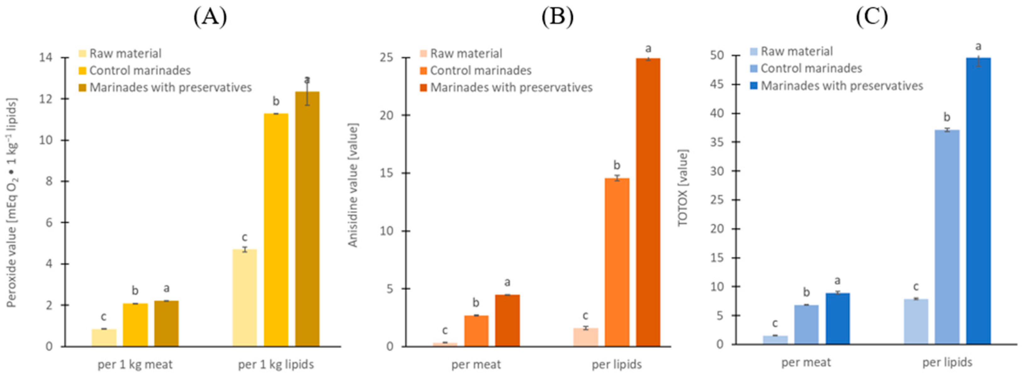 Szymczak, M.; Kamiński, P.; Szymczak, B.; Undeland, I.; Dmytrów, I. Sodium Benzoate and Potassium Sorbate Inhibit Proteolysis and Promote Lipid Oxidation in Atlantic Herring Marinades Produced on an Industrial Scale. Molecules 2025, 30, 4103. https://doi.org/10.3390/molecules30204103