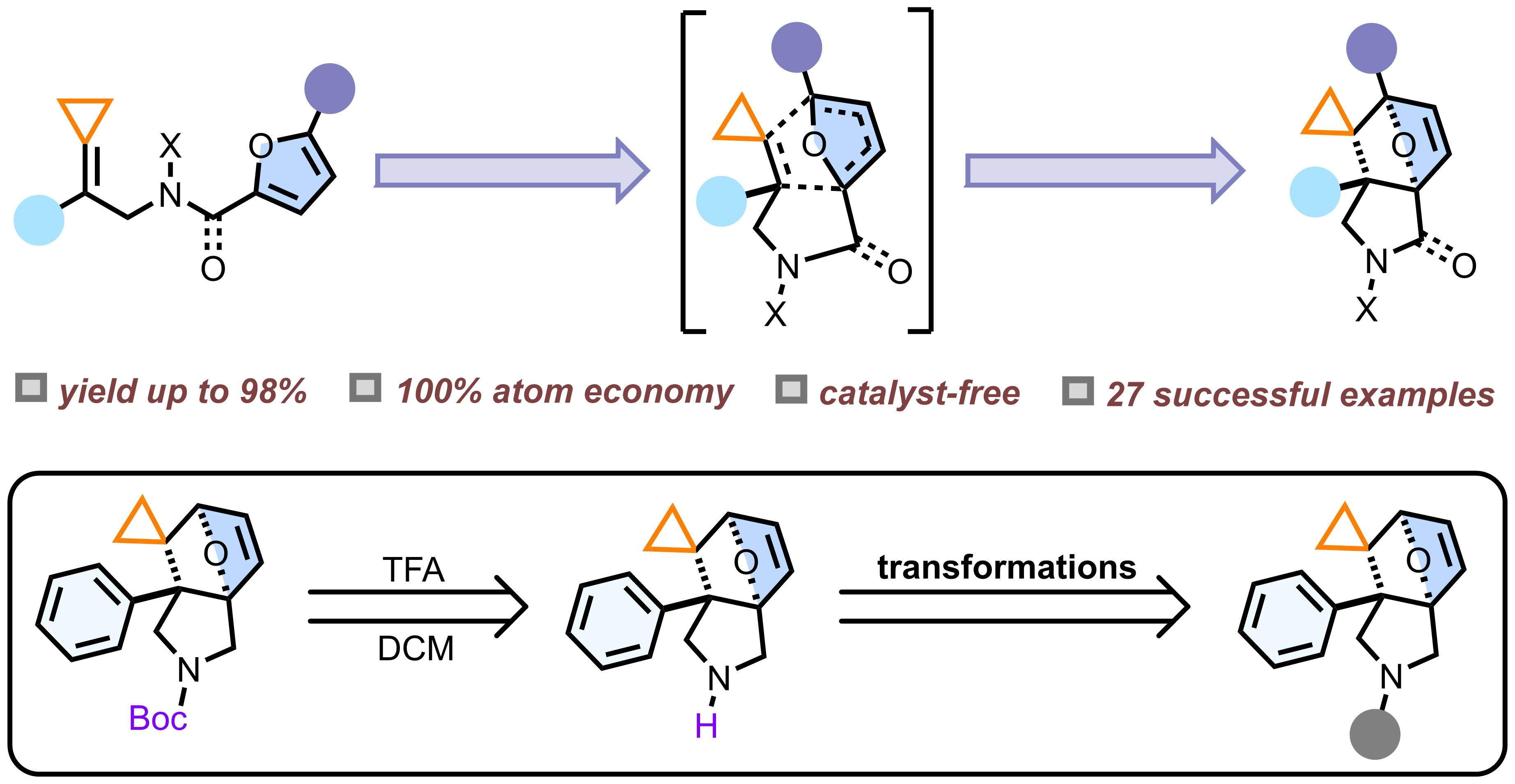 - Tao, L.-Y.; Wei, Y.; Shi, M. Thermally-Induced Intramolecular [4+2] Cycloaddition of Allylamino- or Allyloxy-Tethered Alkylidenecyclopropanes. Chem. Asian J. 2021, 16, 2463–2468. [Google Scholar] [CrossRef] [PubMed]
