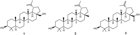 152. Wardecki, T.; Werner, P.; Thomas, M.; Templin, M.F.; Schmidt, G.; Brandner, J.M.; Merfort, I. Influence of birch bark triterpenes on keratinocytes and fibroblasts from diabetic and nondiabetic donors. J. Nat. Prod. 2016, 79, 1112–1123. [Google Scholar] [CrossRef]