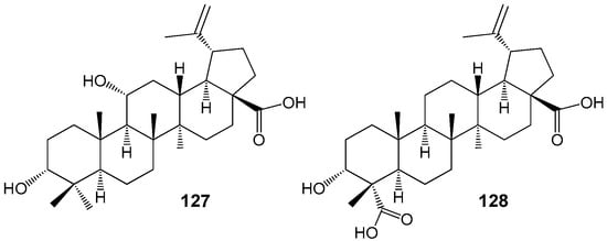 127. Akihisa, T.; Franzblau, S.G.; Ukiya, M.; Okuda, H.; Zhang, F.; Yasukawa, K.; Suzuki, T.; Kimura, Y. Antitubercular activity of triterpenoids from Asteraceae flowers. Biol. Pharm. Bull. 2005, 28, 158–160. [Google Scholar] [CrossRef]