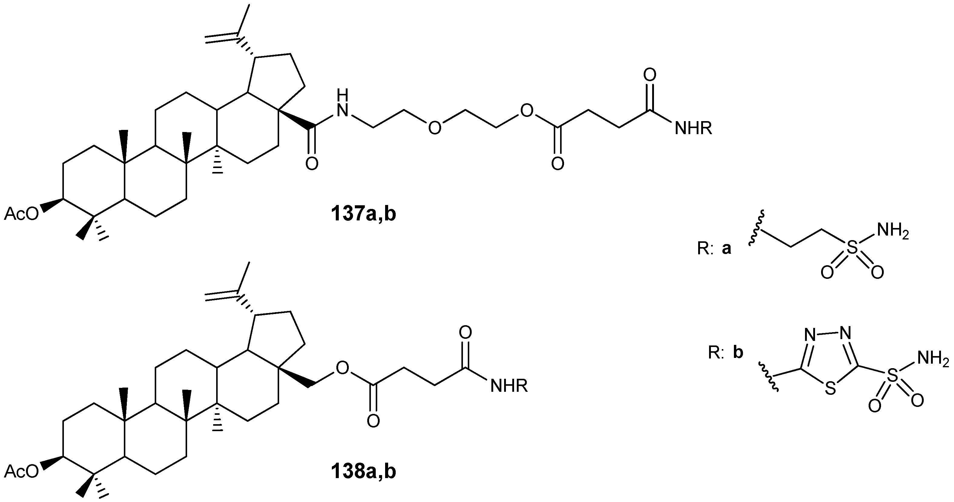 - Denner, T.-C.; Heise, N.V.; Zacharias, J.; Csuk, R. Lupane acetates in small molecule drug hybrids: Probing their inhibitory activity for carbonic anhydrase II. Eur. J Med. Chem. Rep. 2024, 10, 100139. [Google Scholar] [CrossRef]
