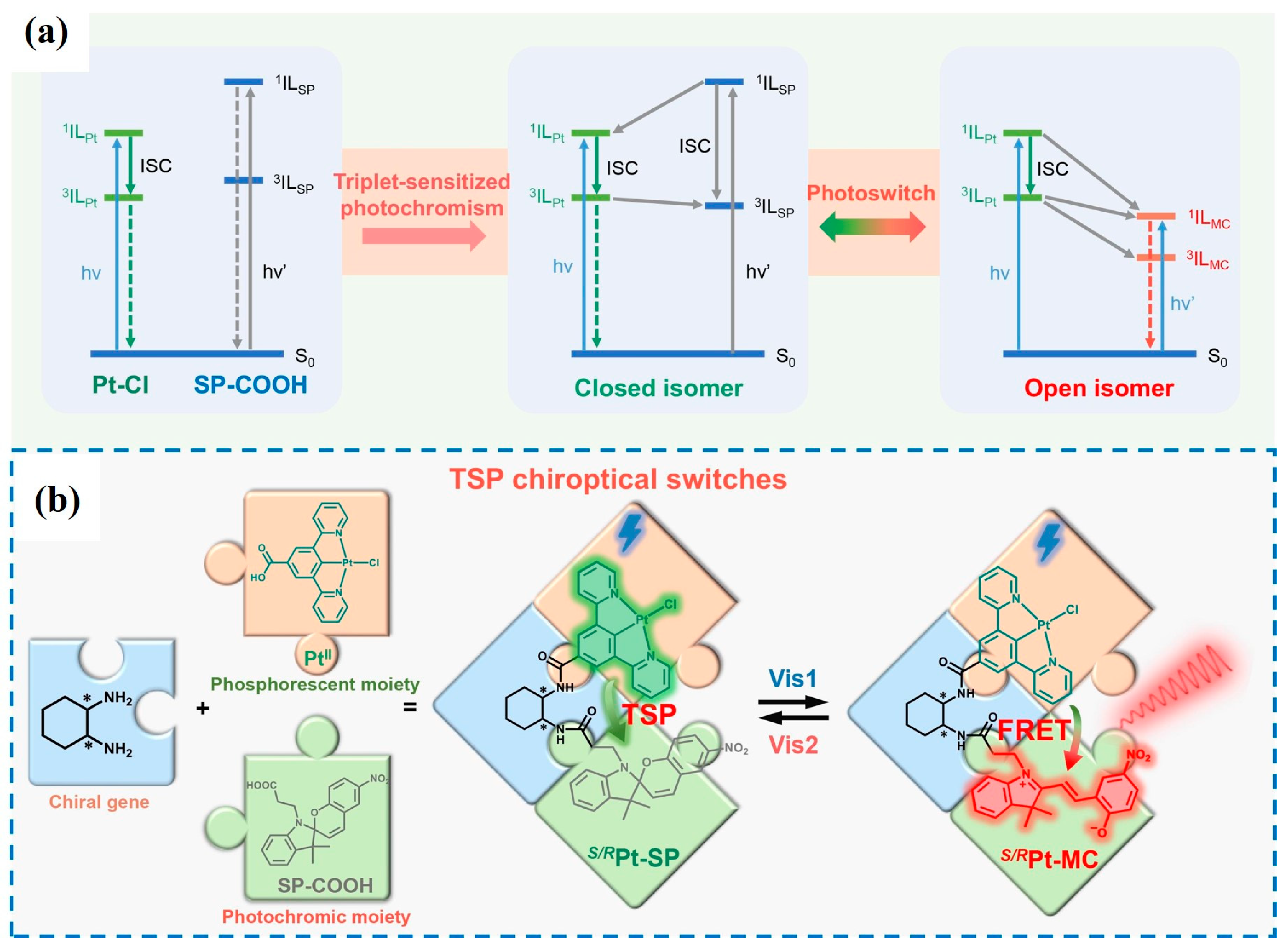 - In metal center–ligand cooperative systems, precise energy-level matching between the isomerizable unit (pre-/post-isomerization) and the phosphorescent metal emitter is required to achieve high-contrast, low-loss RTP switching.