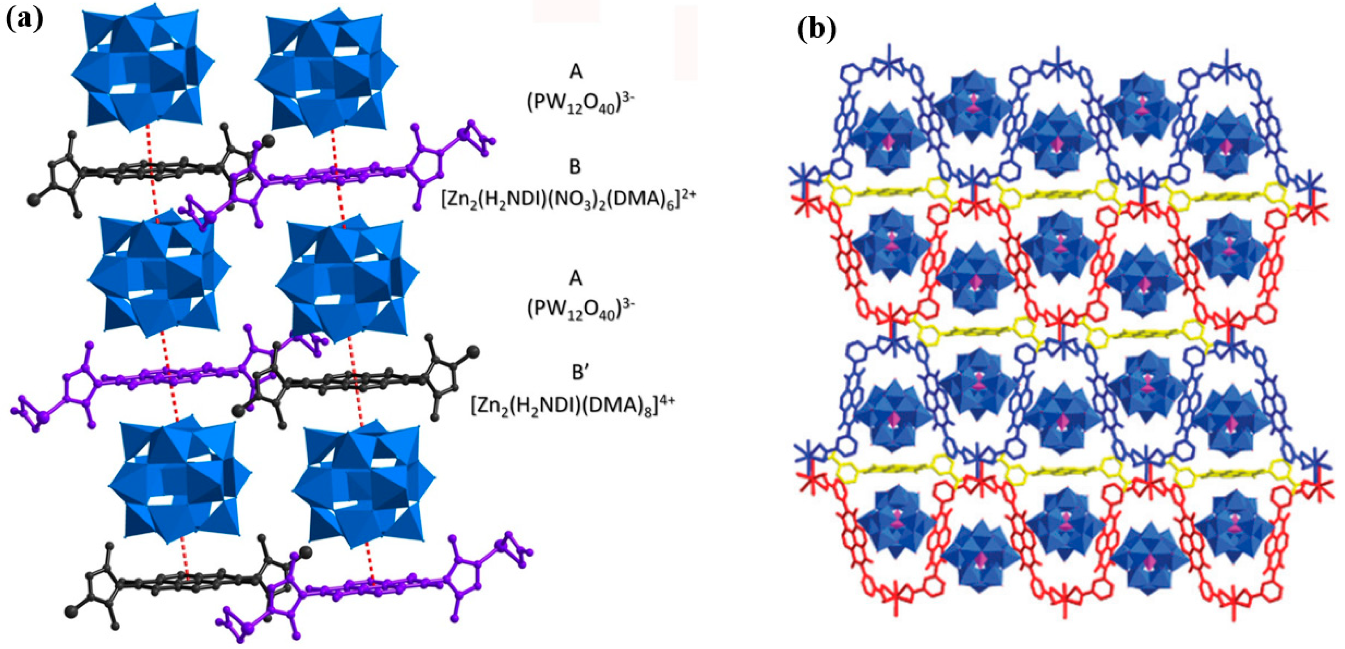 - Liu, J.J.; Wang, Y.; Lin, M.J.; Huang, C.C.; Dai, W.X. Photogeneration of two reduction-active charge-separated states in a hybrid crystal of polyoxometalates and naphthalene diimides. Dalton Trans. 2015, 44, 484–487. [Google Scholar] [CrossRef]