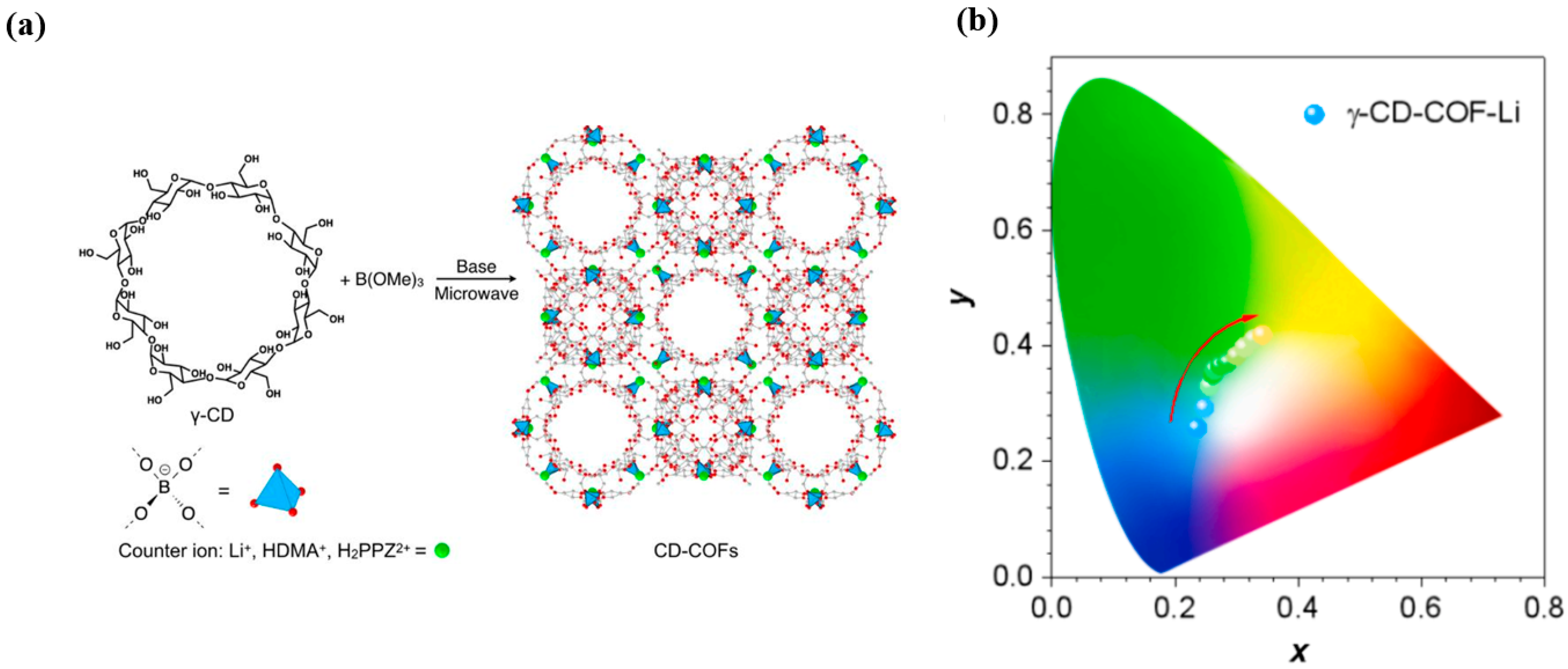- Li, X.T.; Li, M.J.; Tian, Y.L.; Han, S.L.; Cai, L.; Ma, H.C.; Zhao, Y.Q.; Chen, G.J.; Dong, Y.B. A reversible photochromic covalent organic framework. Nat. Commun. 2024, 15, 8484. [Google Scholar] [CrossRef]