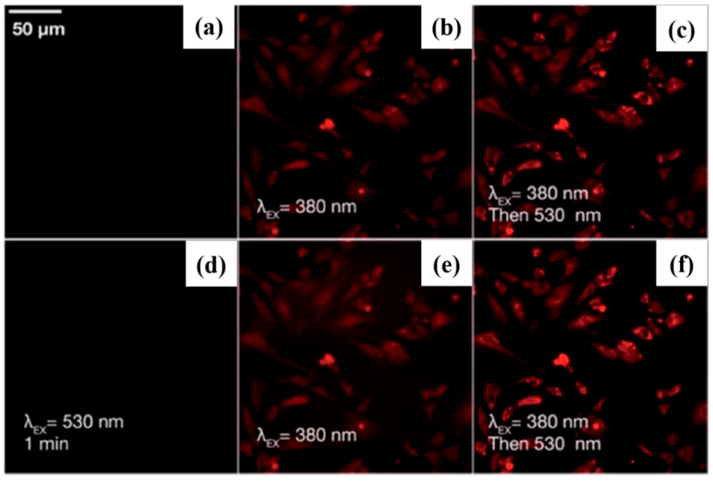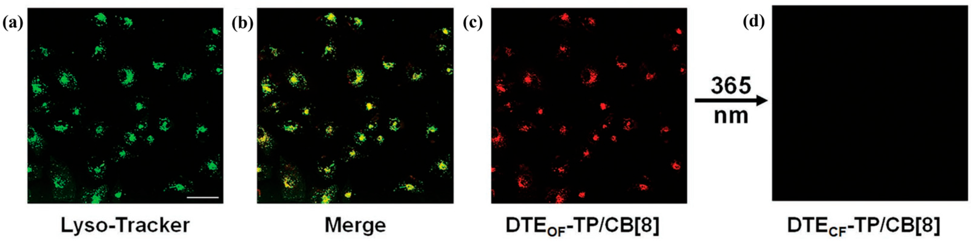 - Wang, C.; Liu, Y.H.; Liu, Y. Near-Infrared Phosphorescent Switch of Diarylethene Phenylpyridinium Derivative and Cucurbit[8]uril for Cell Imaging. Small 2022, 18, 2201821. [Google Scholar] [CrossRef] [PubMed]