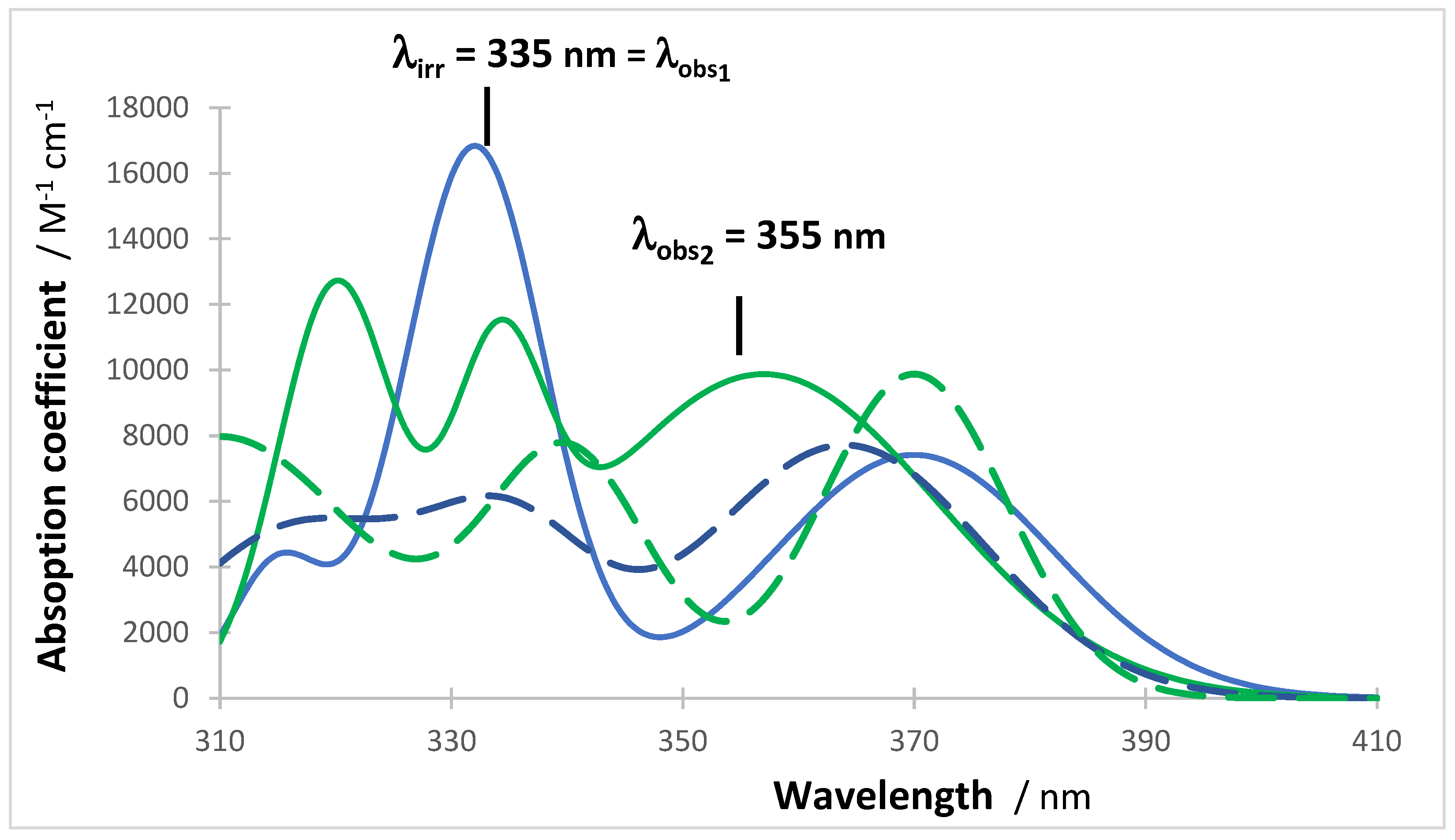 - Mauser, H.; Gauglitz, G.; Compton, R.G.; Hancock, G. (Eds.) Comprehensive Chemical Kinetics, Photokinetics: Theoretical Fundamentals and Applications; Elsevier: Amsterdam, The Netherlands, 1998; Volume 36, ISBN 9780080538853. [Google Scholar]