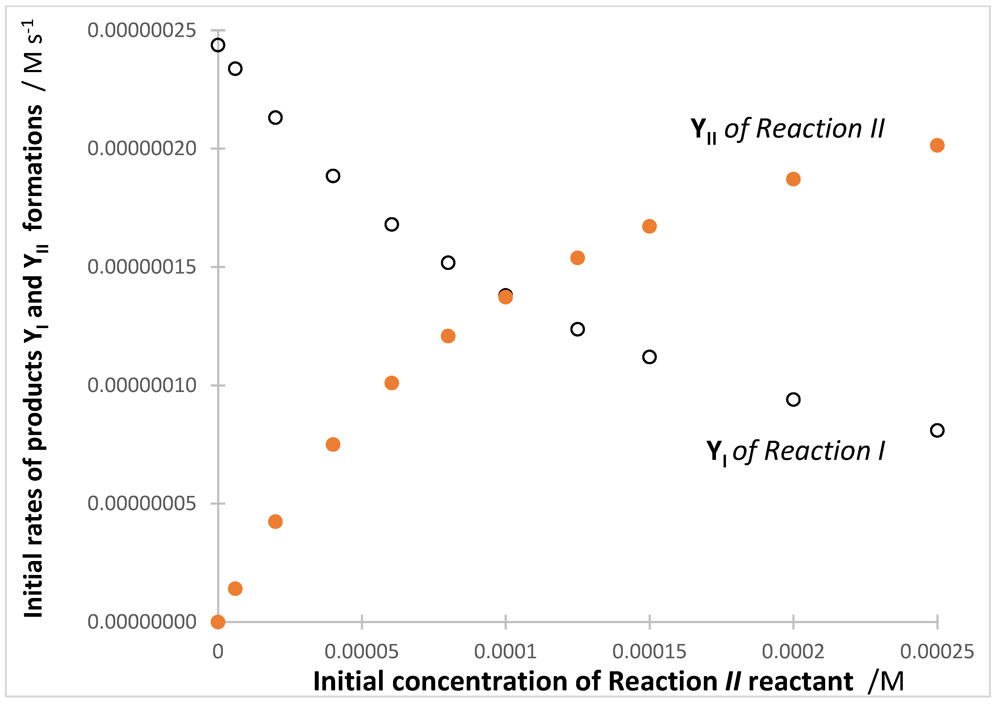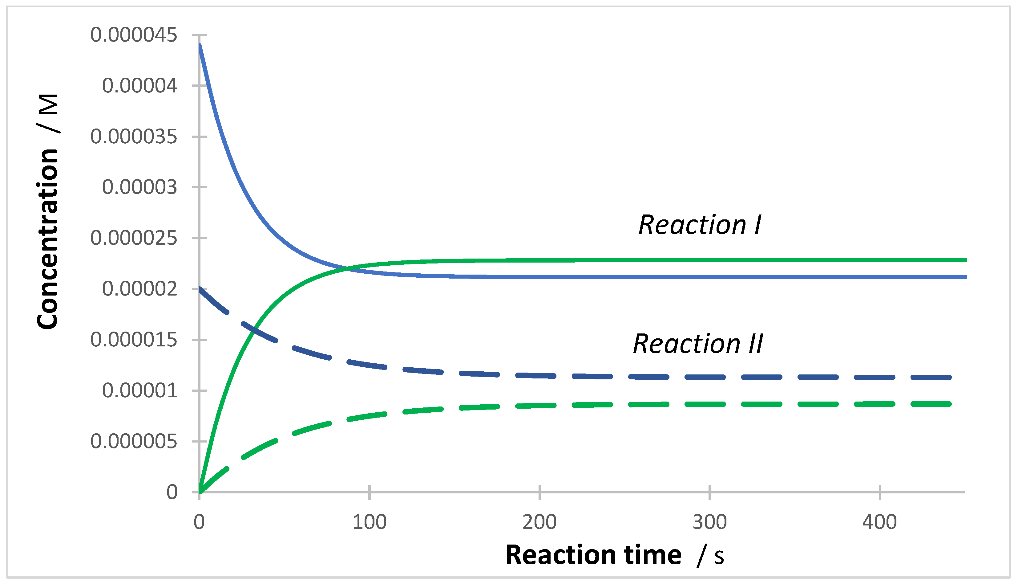 - Park, B.S.; Park, T.J. Chemical kinetics of consecutive and parallel reactions both with a reversible first step. Bull. Korean Chem. Soc. 2015, 36, 2221–2223. [Google Scholar] [CrossRef]