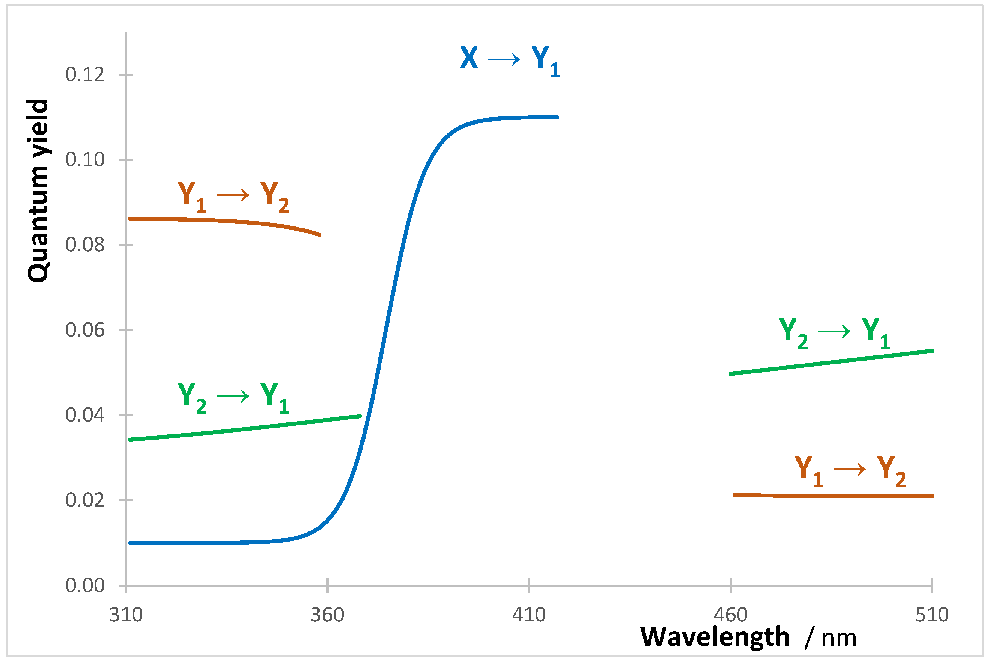 - Maafi, M. On photokinetics under polychromatic light. Front. Chem. 2024, 12, 1367276. [Google Scholar] [CrossRef]