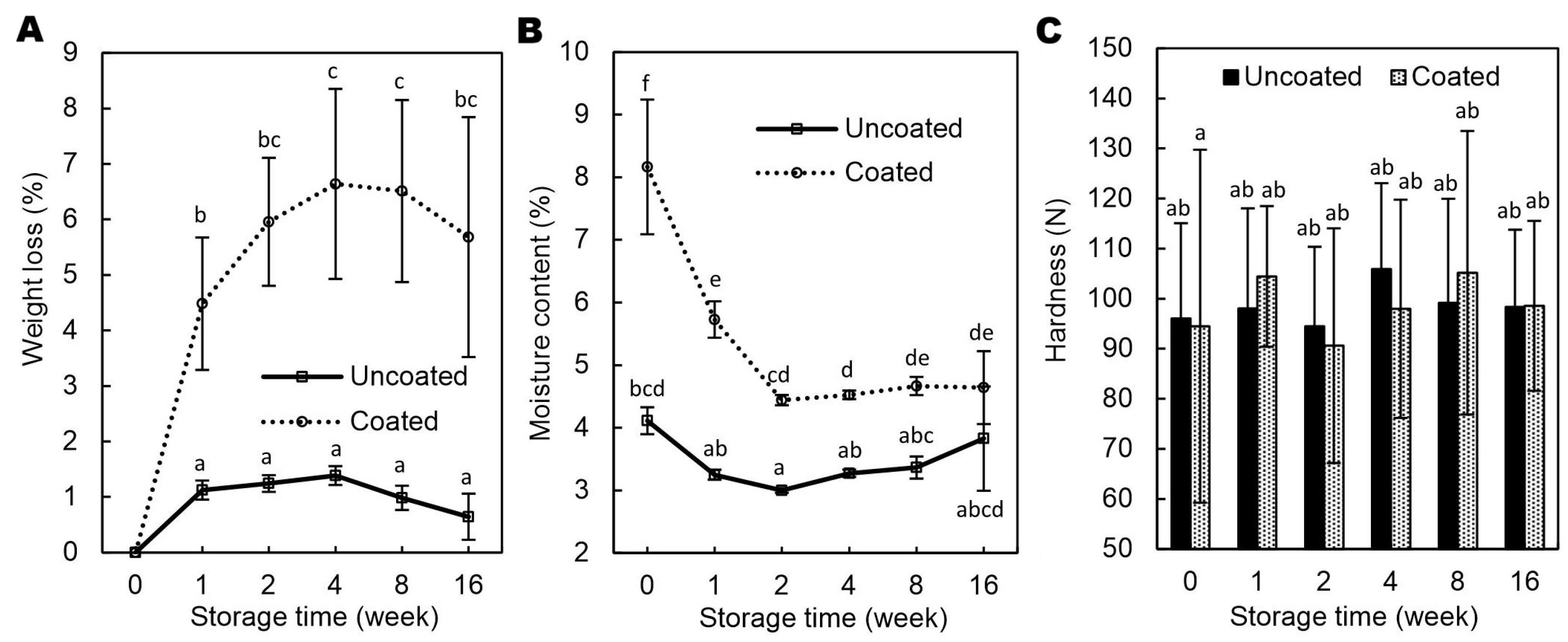 APA StyleKowalczyk, D., Niedźwiadek, K., Skrzypek, T., Zięba, E., & Jarecki, J. (2025). Influence of Arabic Gum/Gelatin/Ascorbyl Palmitate Coating on Quality Parameters of Hazelnut Kernels Stored in Plastic Boxes. Molecules, 30(20), 4126. https://doi.org/10.3390/molecules30204126