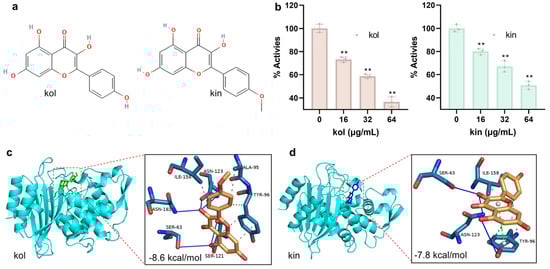 APA StyleLiu, J., Wen, J., Lu, J., Zhou, H., & Wang, G. (2025). Kaempferol and Kaempferin Alleviate MRSA Virulence by Suppressing β-Lactamase and Inflammation. Molecules, 30(20), 4132. https://doi.org/10.3390/molecules30204132