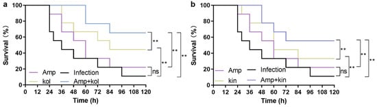 2.1.8. Kol and Kin Combined with Amp Protect G. Mellonella from S. Aureus USA300