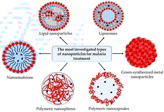 The most investigated types of nanoparticles for malaria therapies.