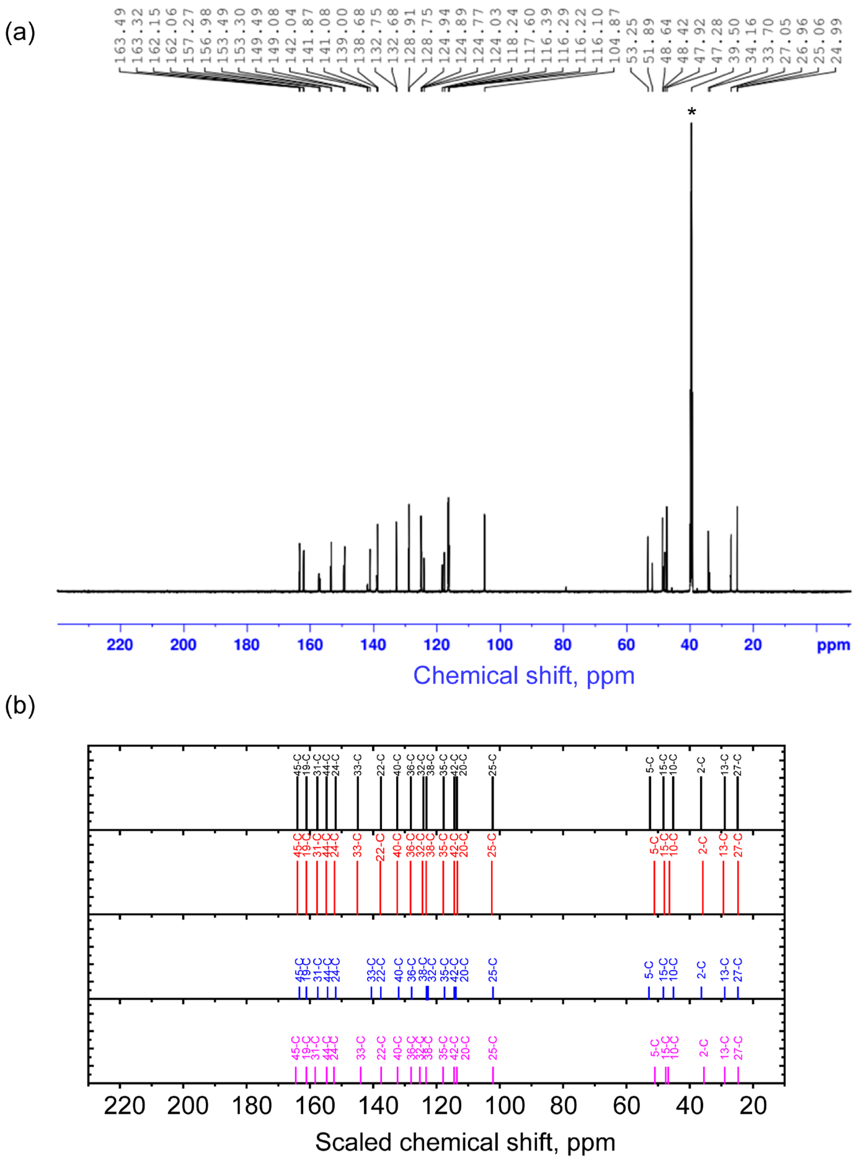 - Cheeseman, J.R.; Trucks, G.W.; Keith, T.A.; Frisch, M.J. A Comparison of Models for Calculating Nuclear Magnetic Resonance Shielding Tensors. J. Chem. Phys. 1996, 104, 5497–5509. [Google Scholar] [CrossRef]