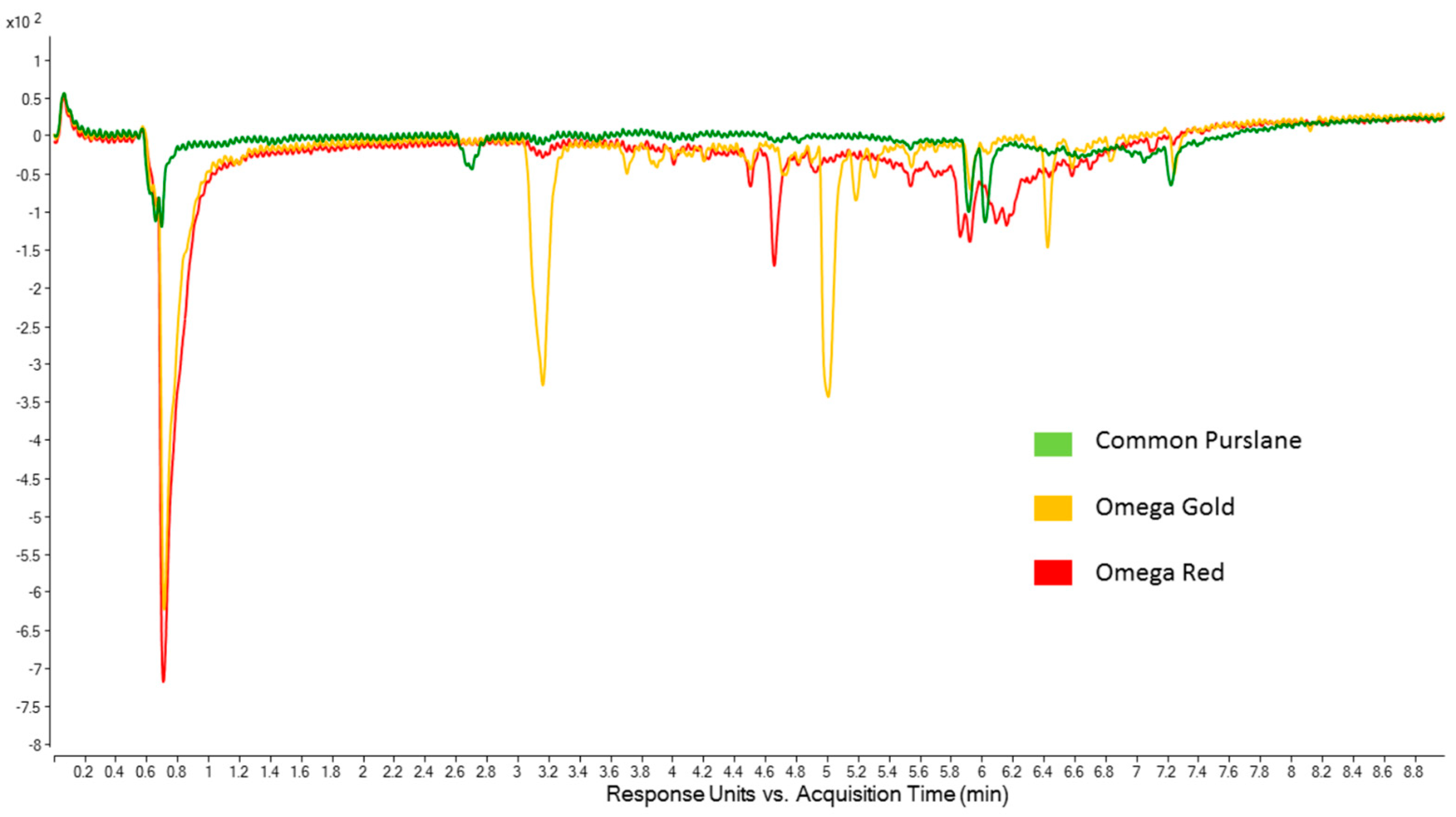 | Plant Part | Common Purslane 1 | Omega Gold | Omega Red |