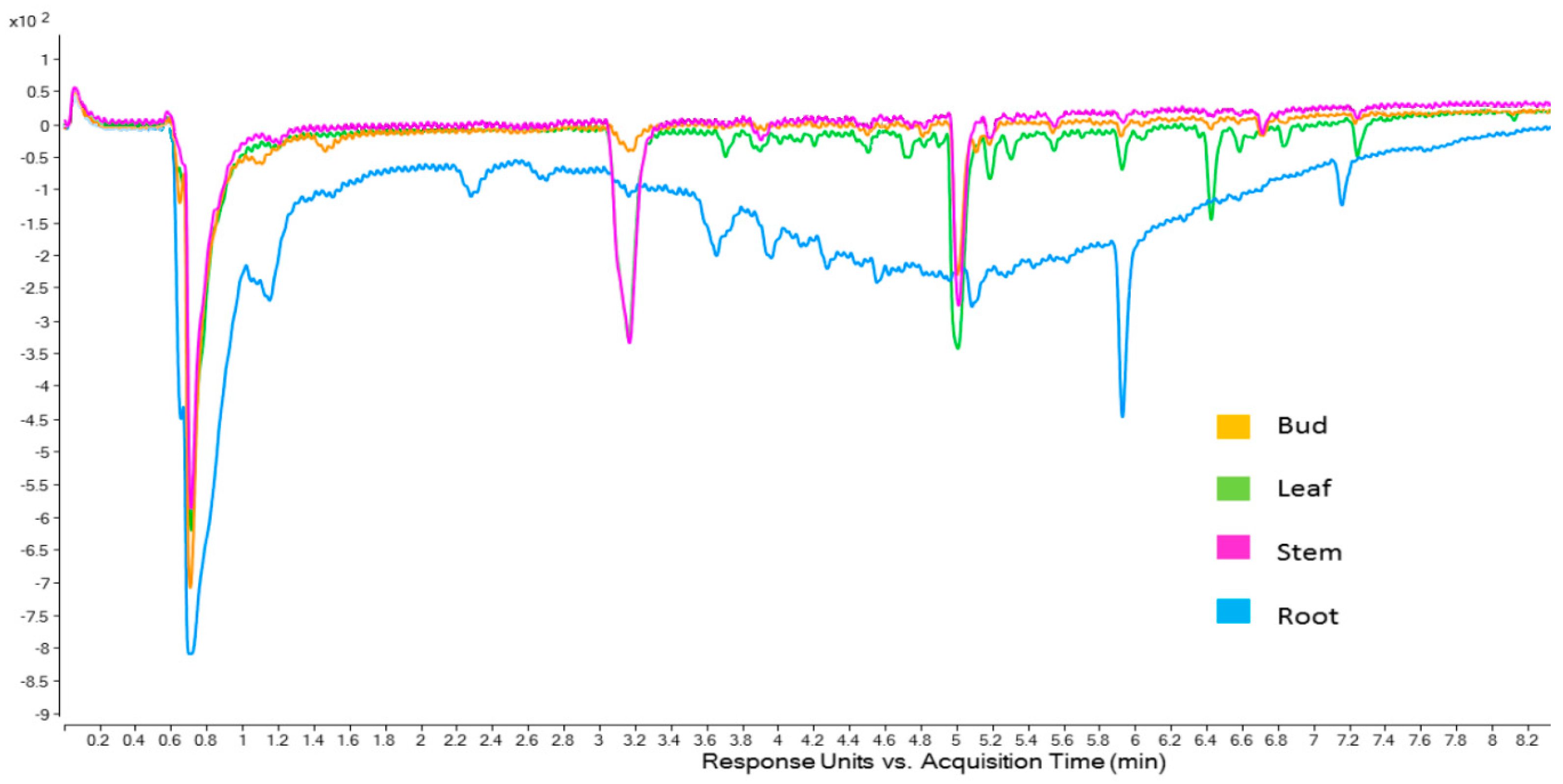 3.11. Chromatographic Analyses of Plant Portions