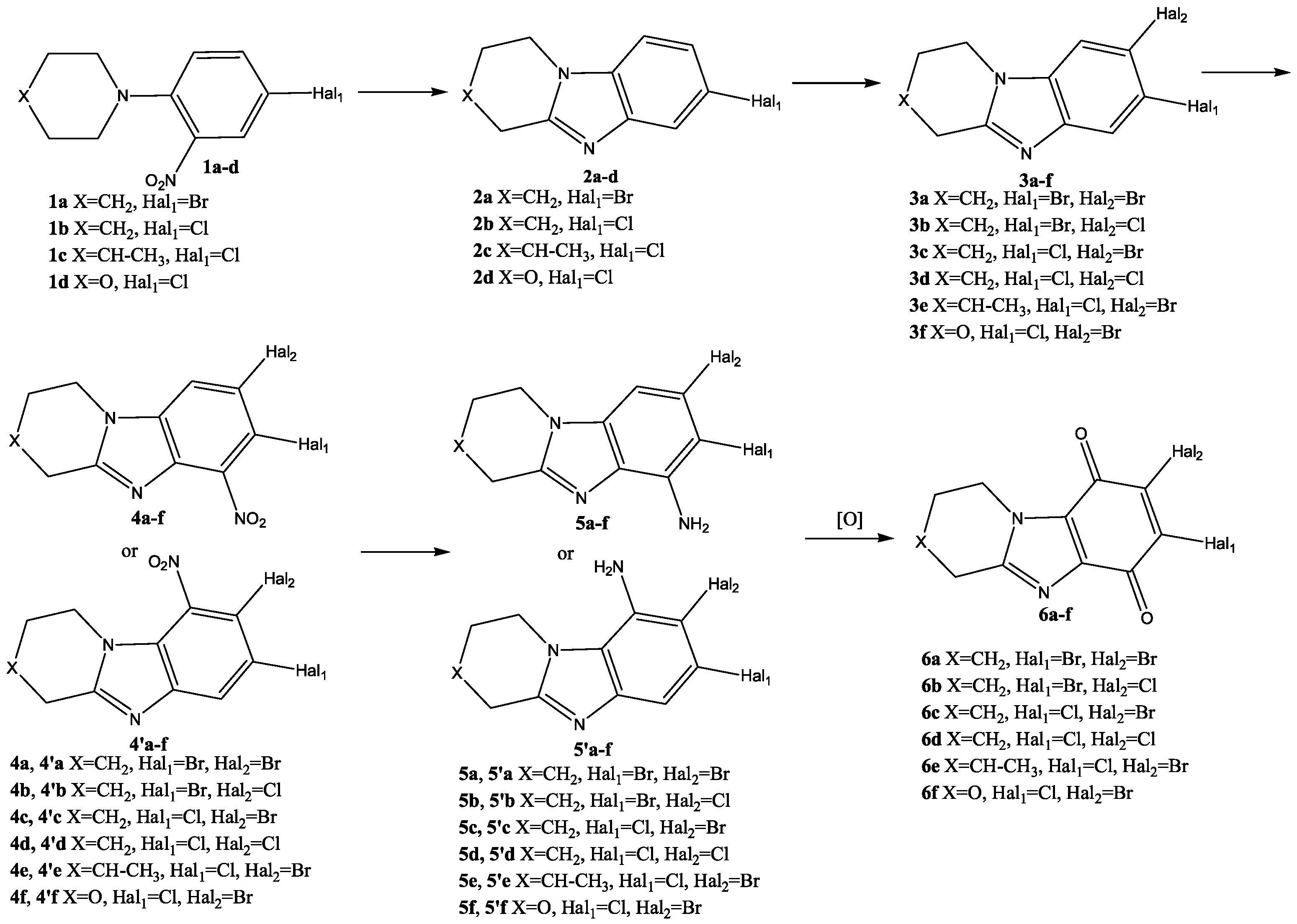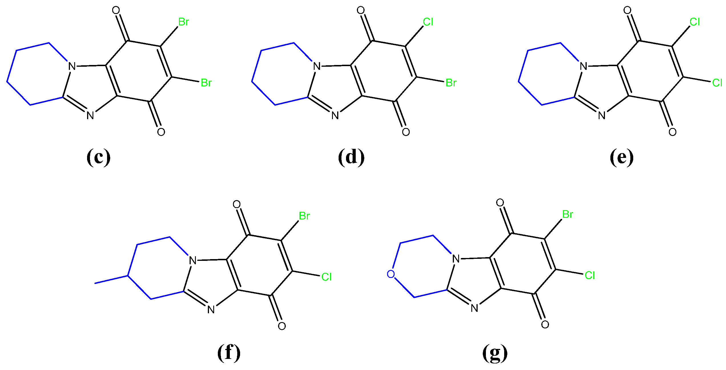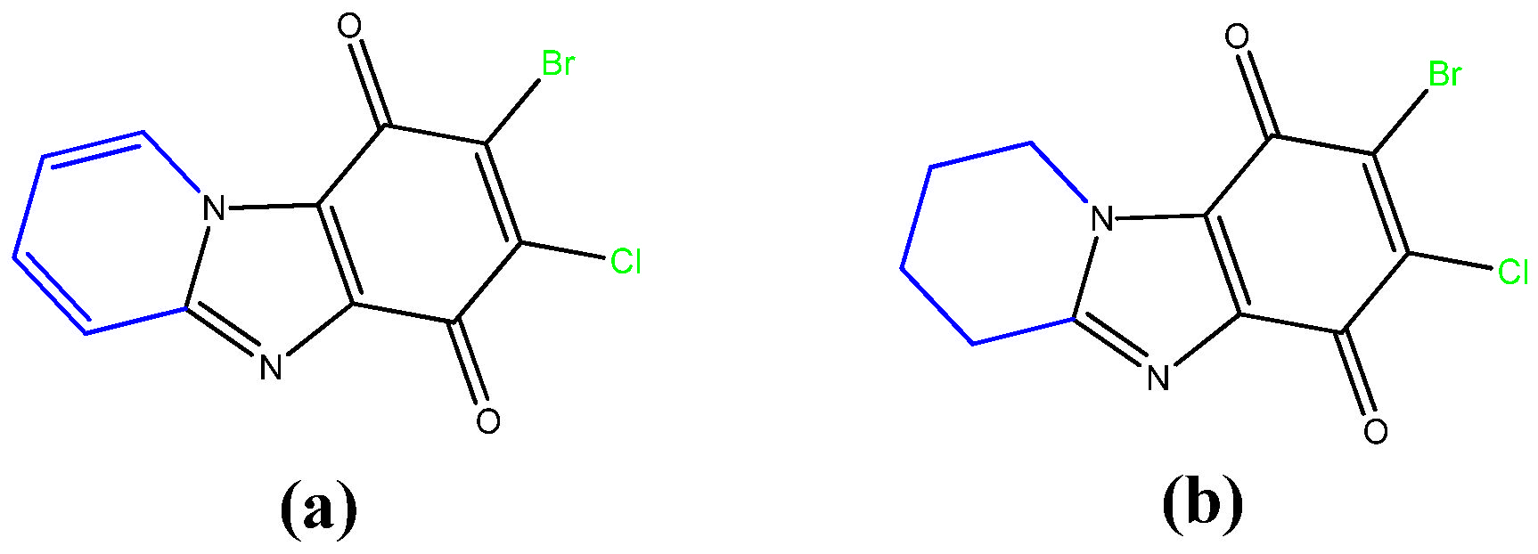 - Begunov, R.S.; Aleksandrova, Y.R.; Yandulova, E.Y.; Nikolaeva, N.S.; Neganova, M.E. Synthesis and cytotoxicity of 7,8-dihalopyrido[1,2-a]benzimidazole-6,9-dione and its 1,2,3,4-tetrahydro analogue. Mendeleev Commun. 2023, 33, 237–239. [Google Scholar] [CrossRef]