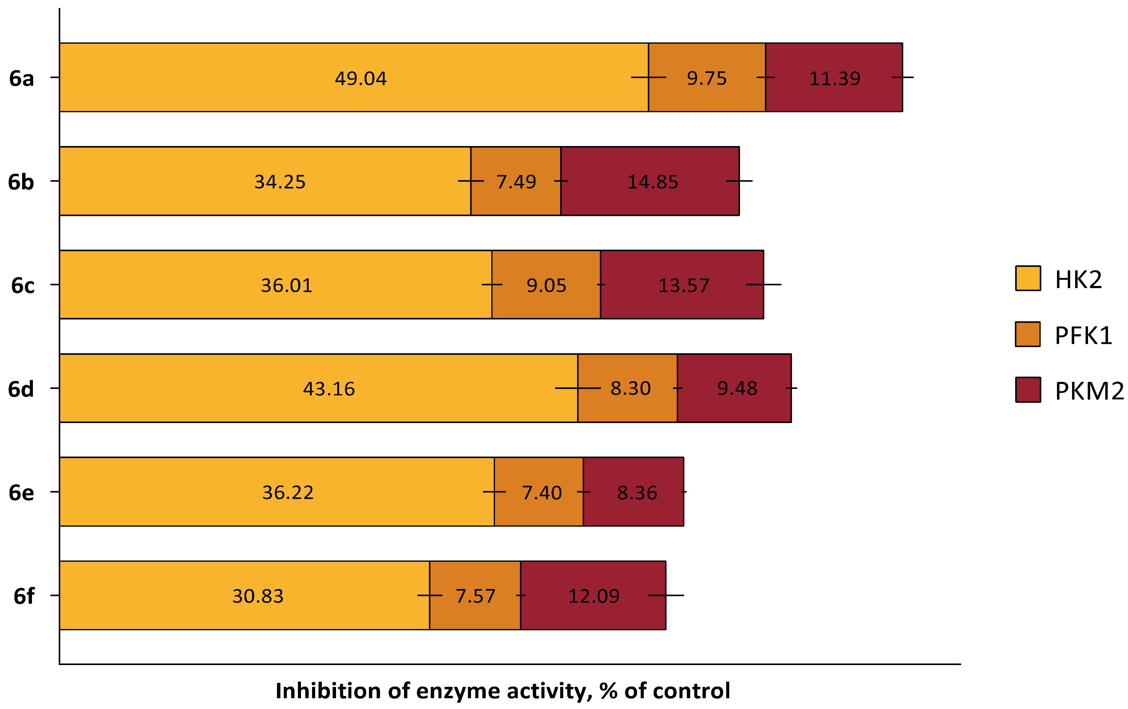 3.2.4. Study of the Compounds’ Effect on the Activity of Allosteric Glycolytic Enzymes