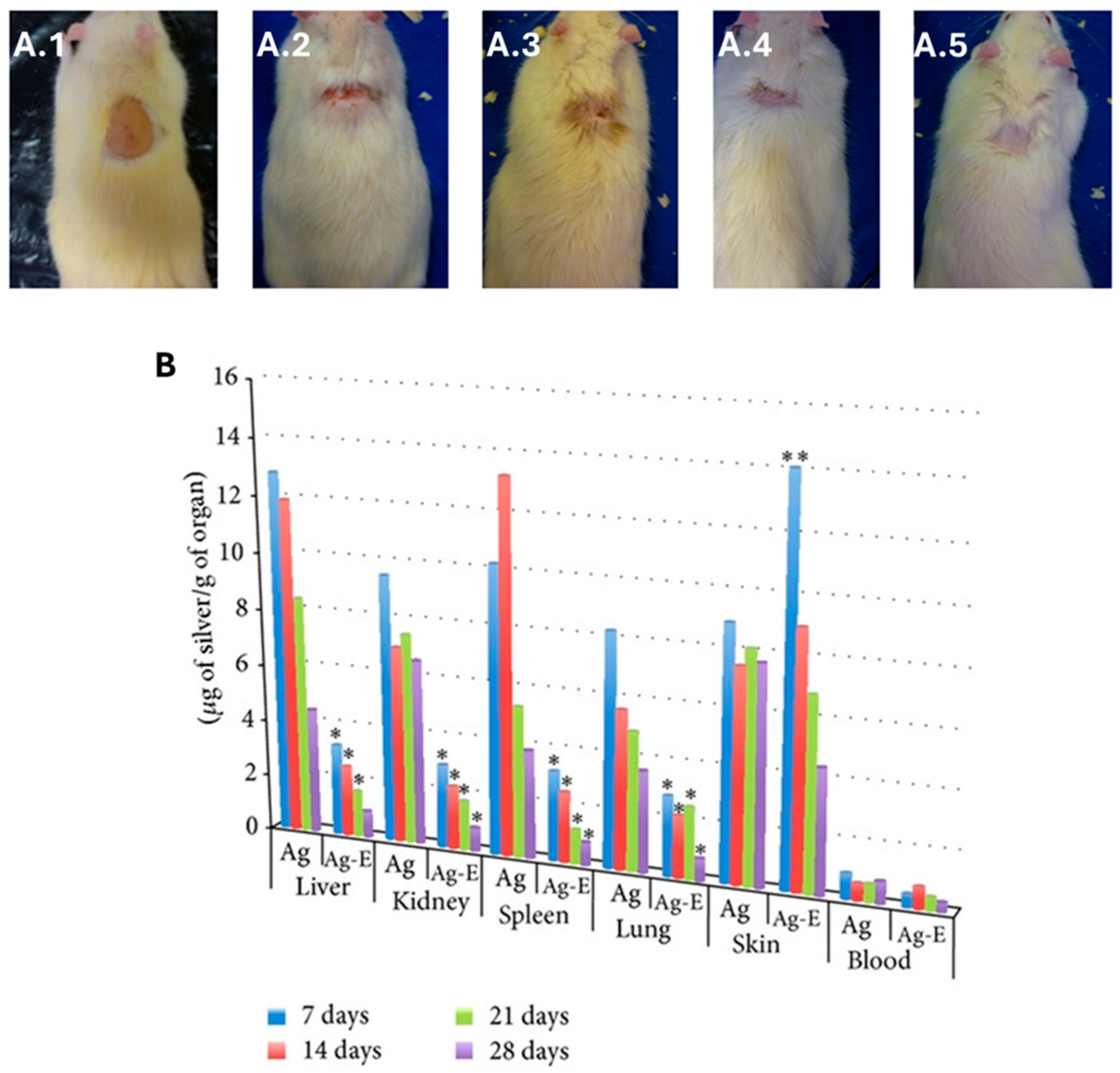 - Marcato, P.D.; De Paula, L.B.; Melo, P.S.; Ferreira, I.R.; Almeida, A.B.A.; Torsoni, A.S.; Alves, O.L.; Choy, J.-H. In Vivo Evaluation of Complex Biogenic Silver Nanoparticle and Enoxaparin in Wound Healing. J. Nanomater. 2015, 2015, 439820. [Google Scholar] [CrossRef]