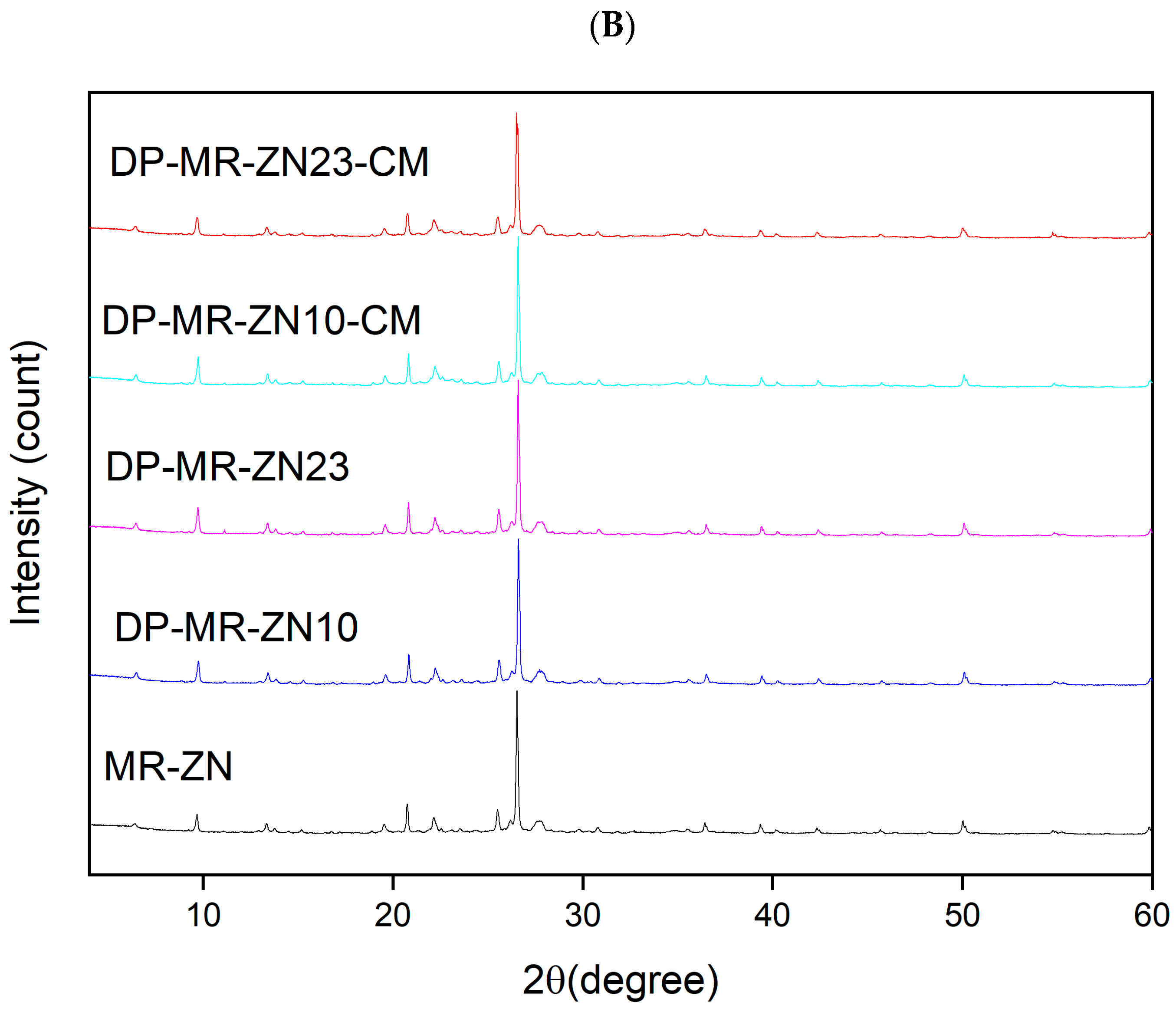 3.7. Physicochemical Characterization of Zeolitic Materials