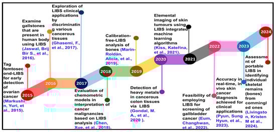 LIBS timeline highlights the achieved milestones in the field of cancer detection and calcified tissue analysis over the past decade [39,45,46,47,48,49,50,51,52,53].