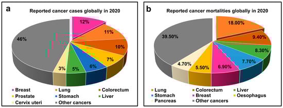 Reported distinct cancer cases globally in 2020: (a) incident rate; (b) casualties [189].