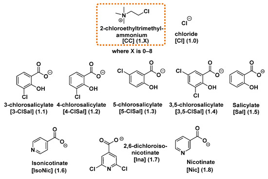 8]. Two of the synthesized salts—chlormequat salicylate and nicotinate [