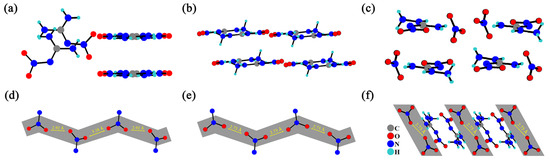 Energetic materials (EMs) epitomize humanity’s quest to harness chemical energy at atomic scales [1,2,3,4]. Generally, the desired high performance can be achieved by using compounds with zero oxygen balance, which can maximize the release of energy without any waste, but these high-energy-density materials (HEDMs) also tend to be sensitive to to external stimuli [5,6,7,8]. The contrary behavior of the required parameters of HEDMs leads to the conclusion that not only the molecular design but also the crystallographic design should be considered to find a balance between performance and safety for new energetic materials.