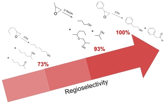 - In hydrogen transfer to methyl-, n-butyl-, and phenyloxirane, the dominant product is always the primary alcohol. The regioselectivity to this alcohol is 93, 73, and 100% for these oxiranes, respectively.