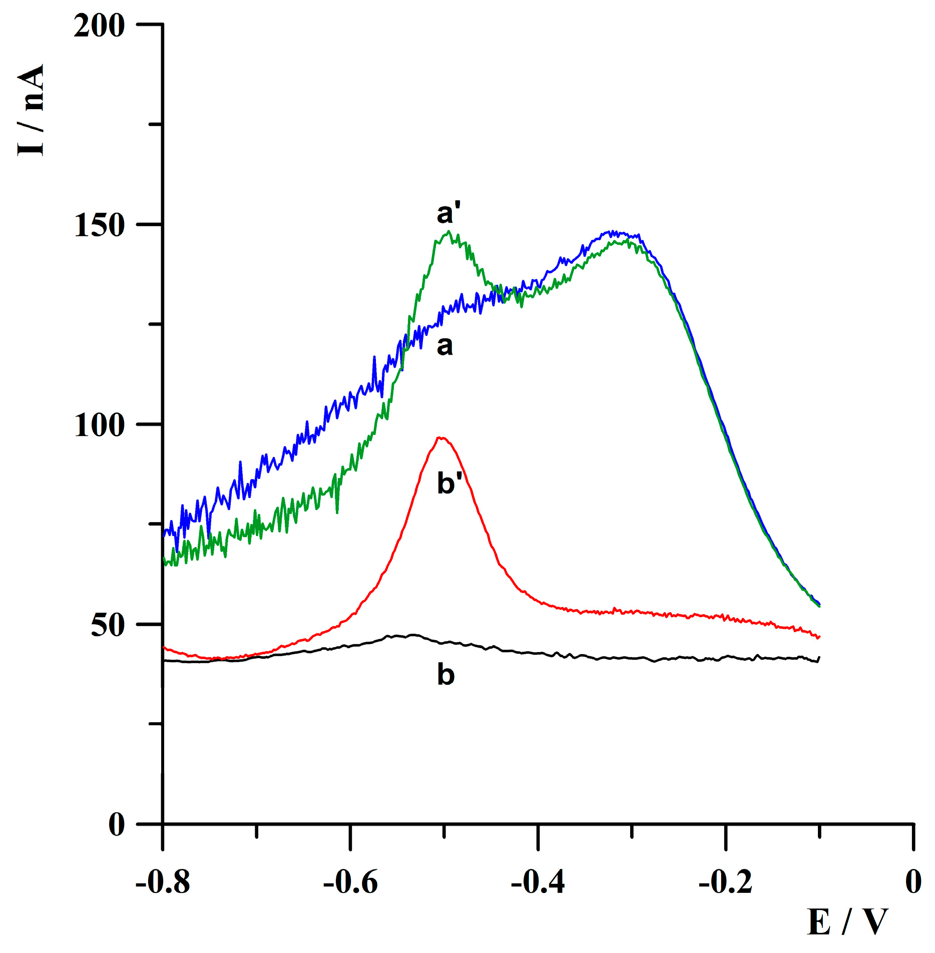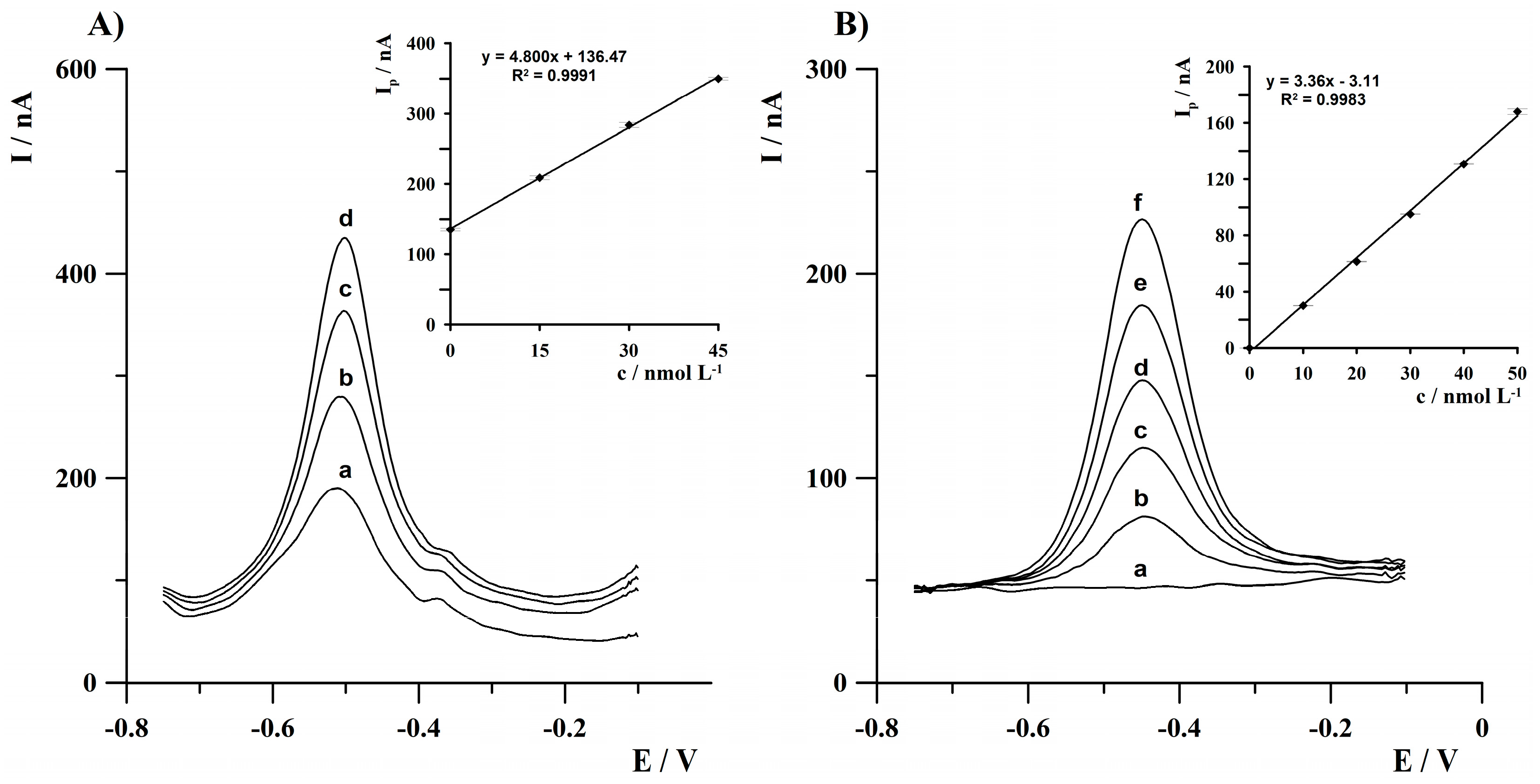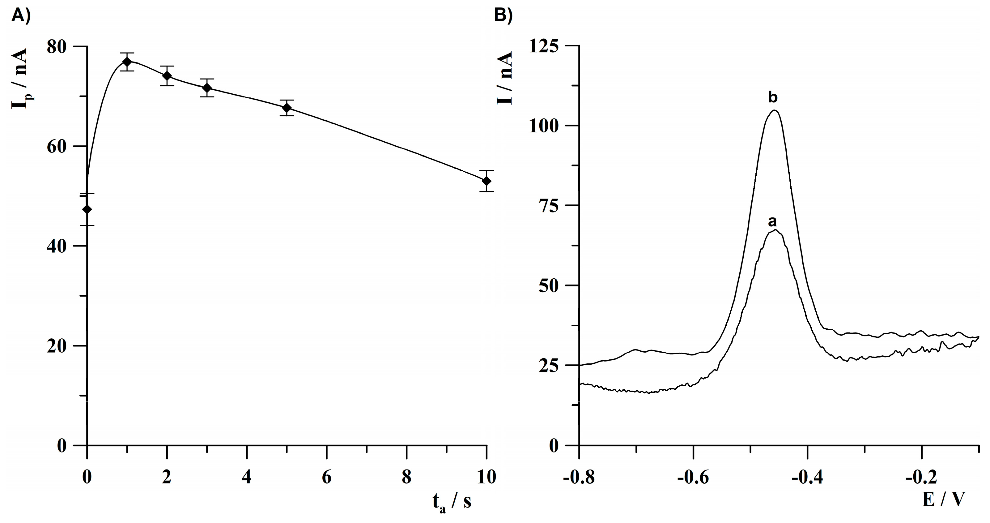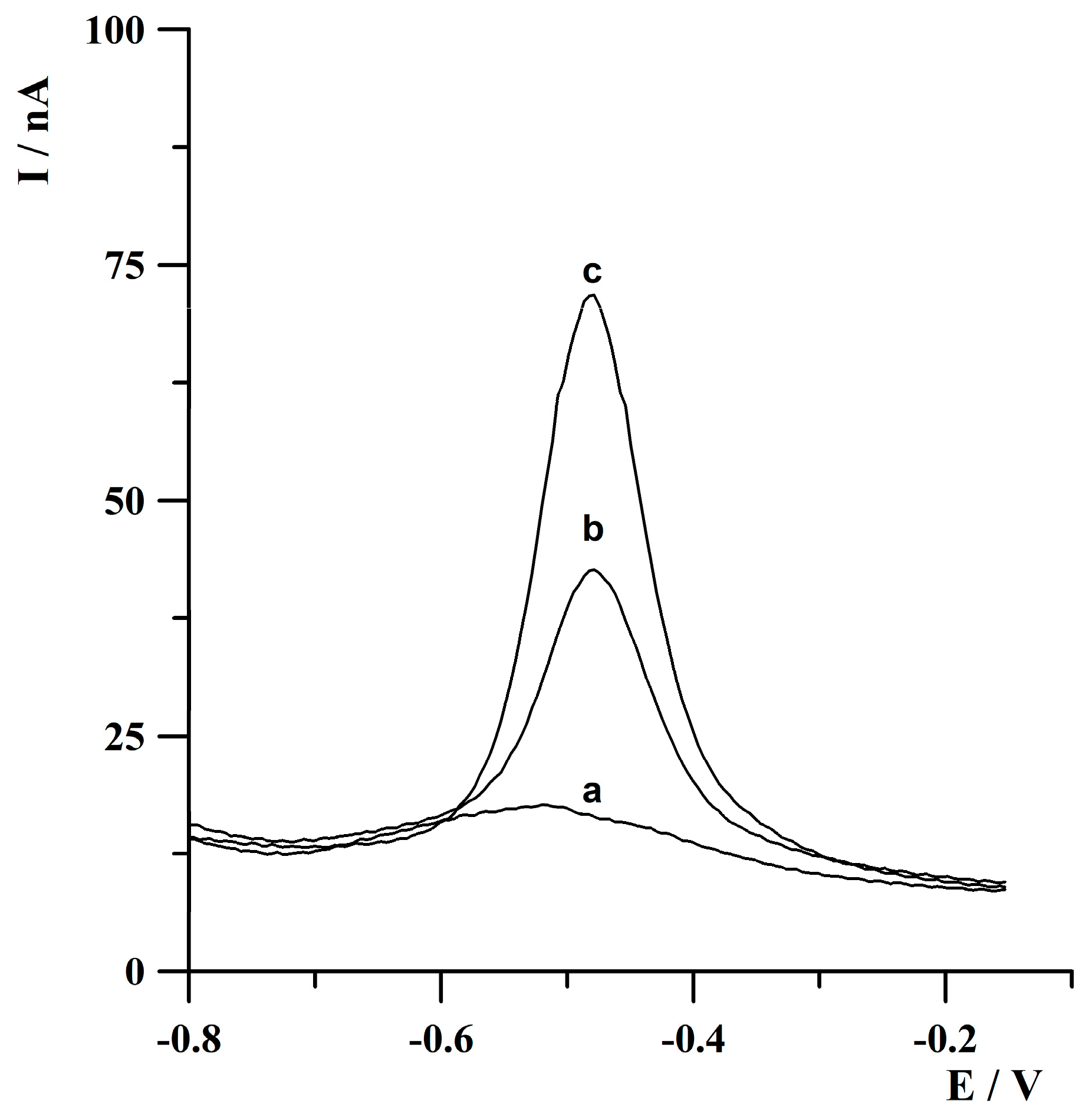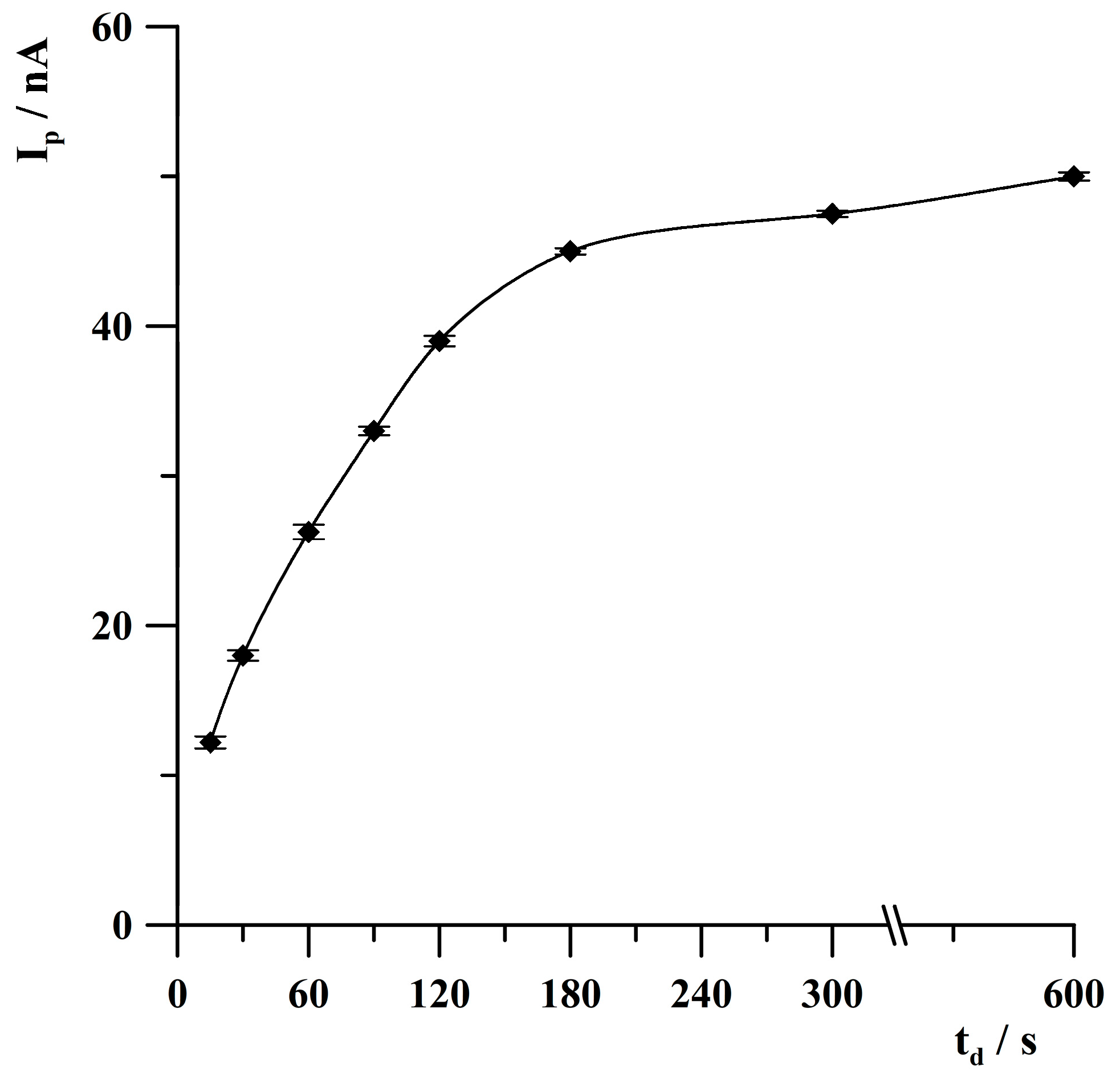 - After a ten-second equilibration step, a square wave anodic stripping voltammogram was recorded while the potential was changed from −0.8 to −0.1 V. Frequency, amplitude and step potential were 300 Hz, 25 mV and 5 mV, respectively. The research was conducted after a 5-minute solution deoxygenation with nitrogen as an inert gas.