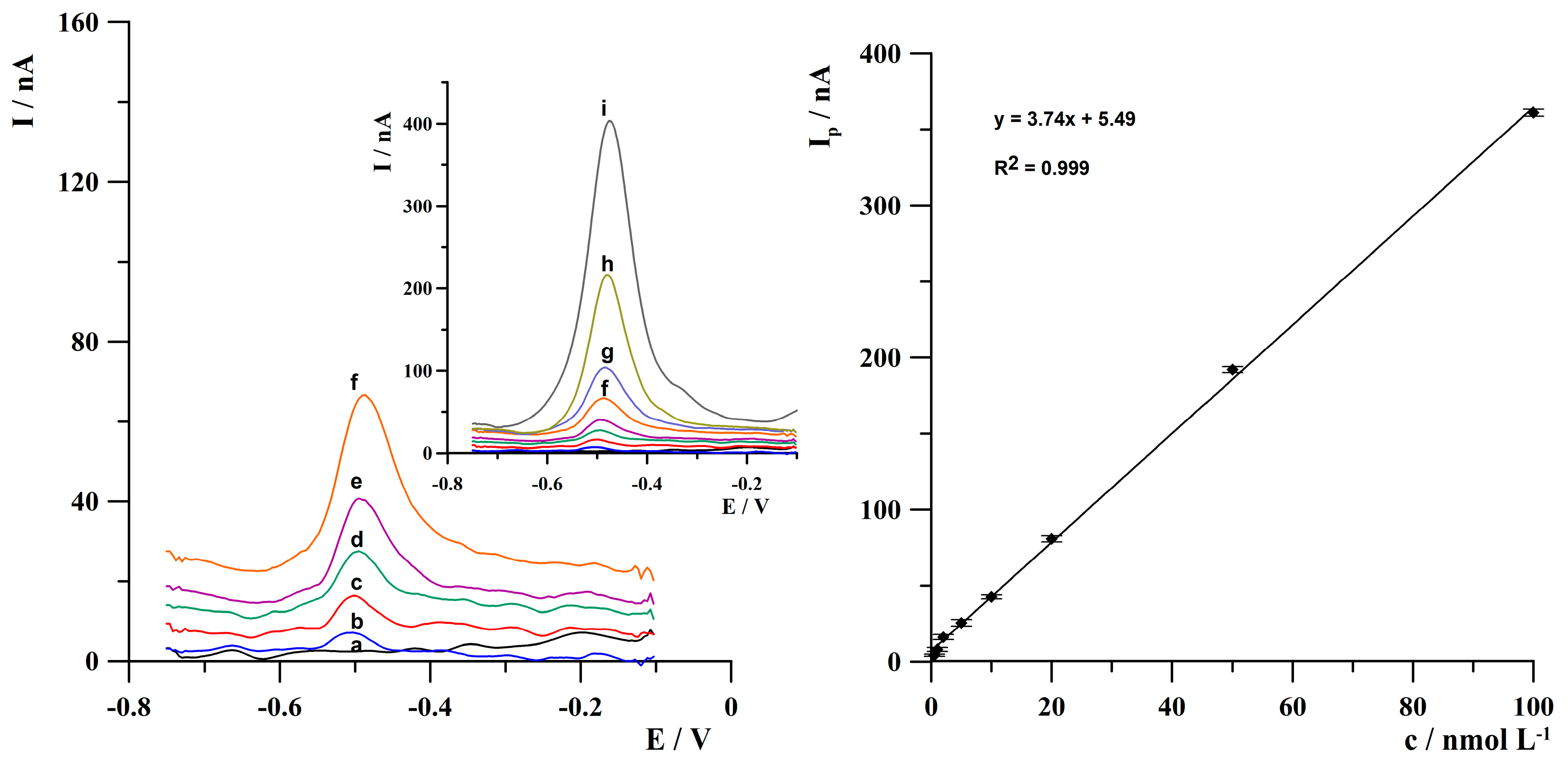| Working Electrode | Deposition Time [s] | Linear Range [nmol L−1] | Detection Limit [nmol L−1] | Remarks | Ref. |