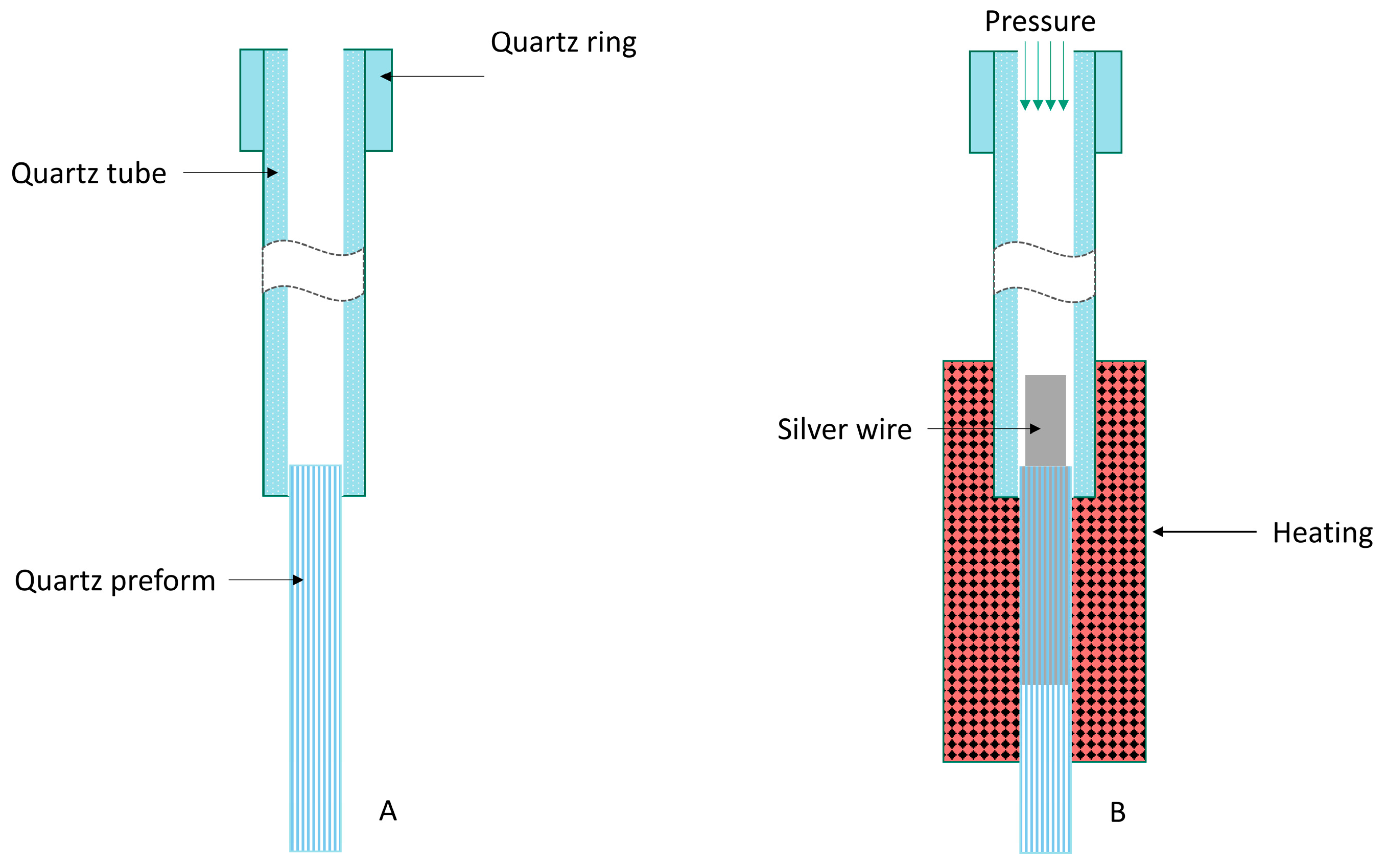 - Lee, H.W.; Schmidt, M.A.; Russell, R.F.; Joly, N.Y.; Tyagi, H.K.; Uebel, P.; Russell, P.S.J. Pressure-Assisted Melt-Filling and Optical Characterization of Au Nano-Wires in Microstructured Fibers. Opt. Express 2011, 19, 12189. [Google Scholar] [CrossRef]