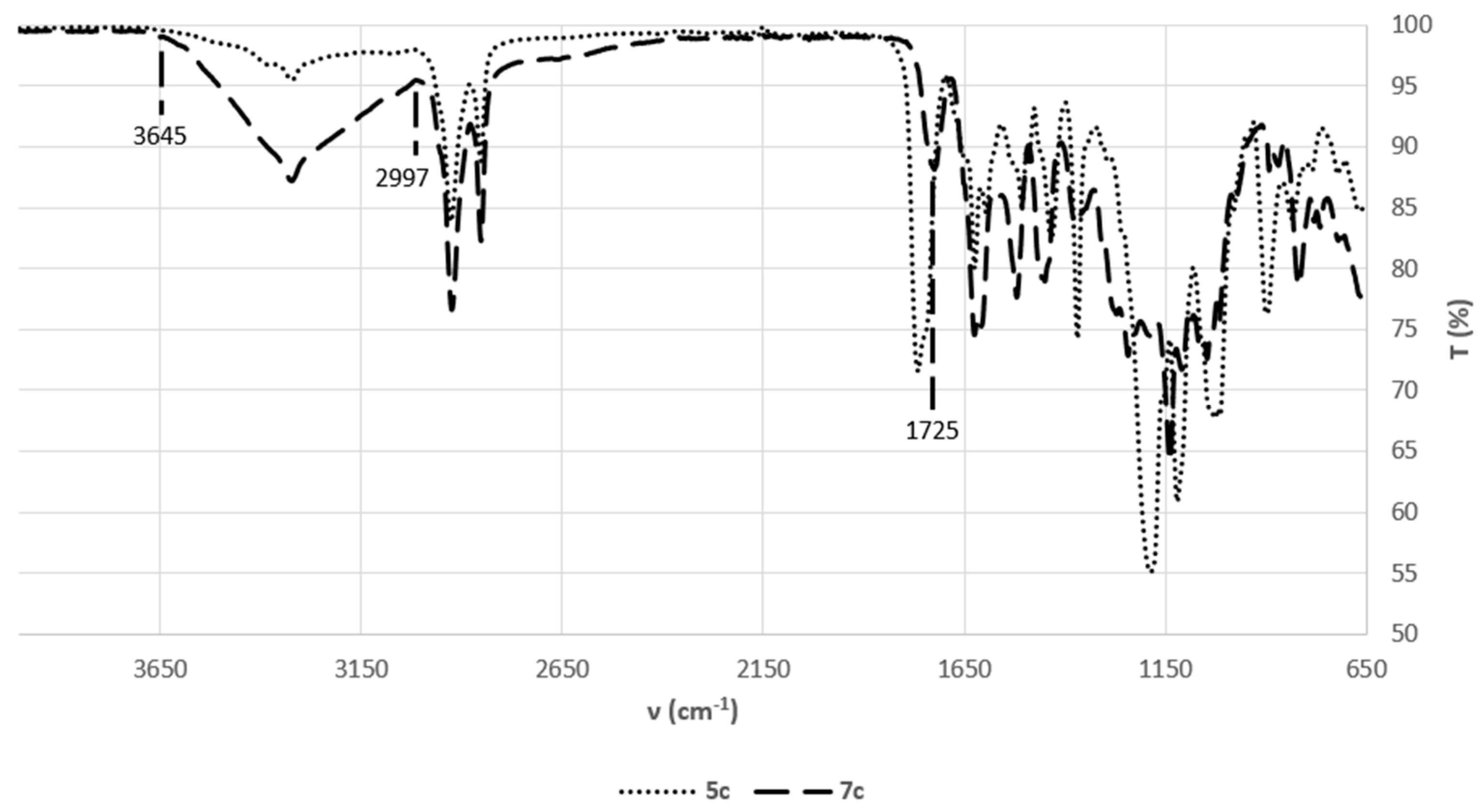3.2.6. Procedure for Obtaining Compounds 6a–6d and 7a–7d