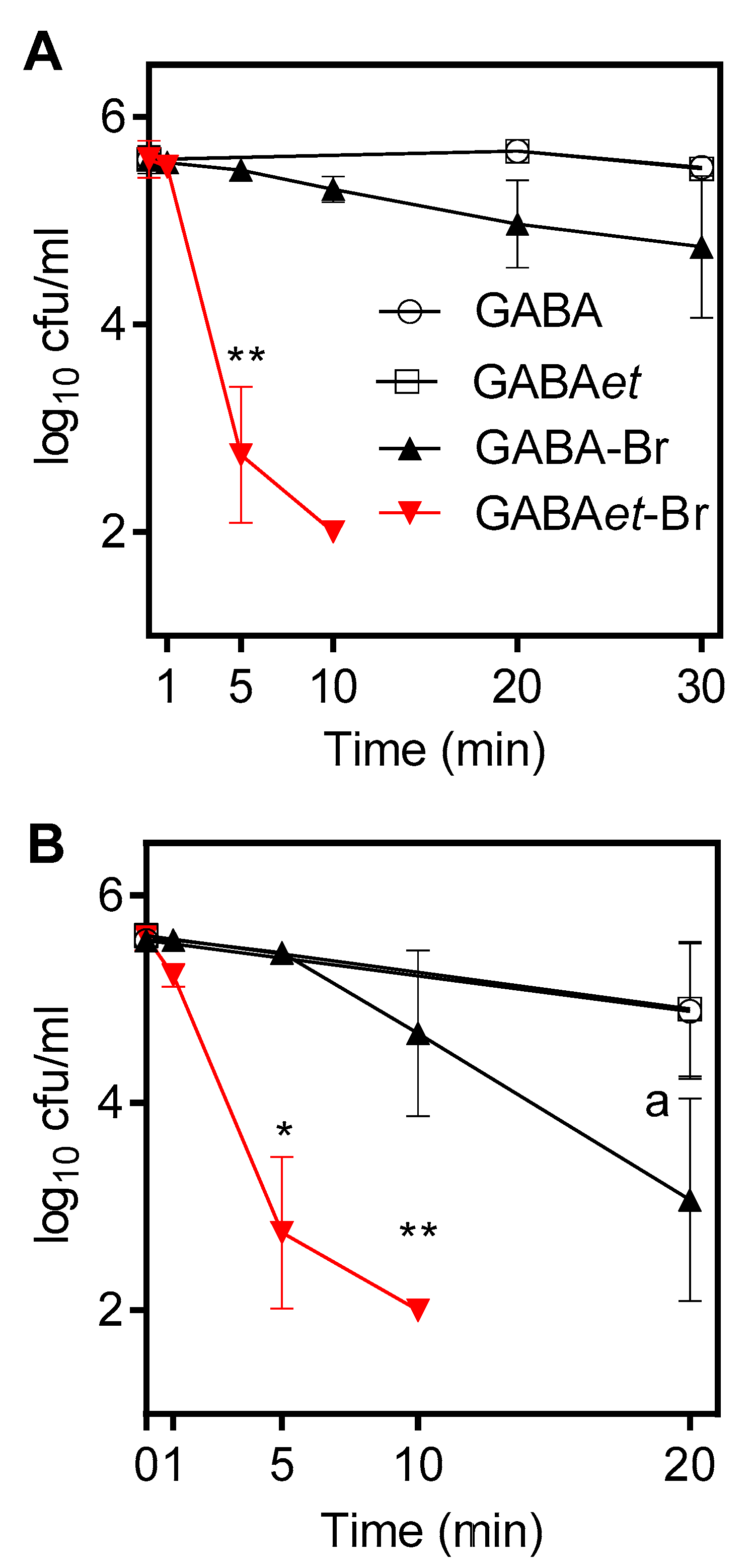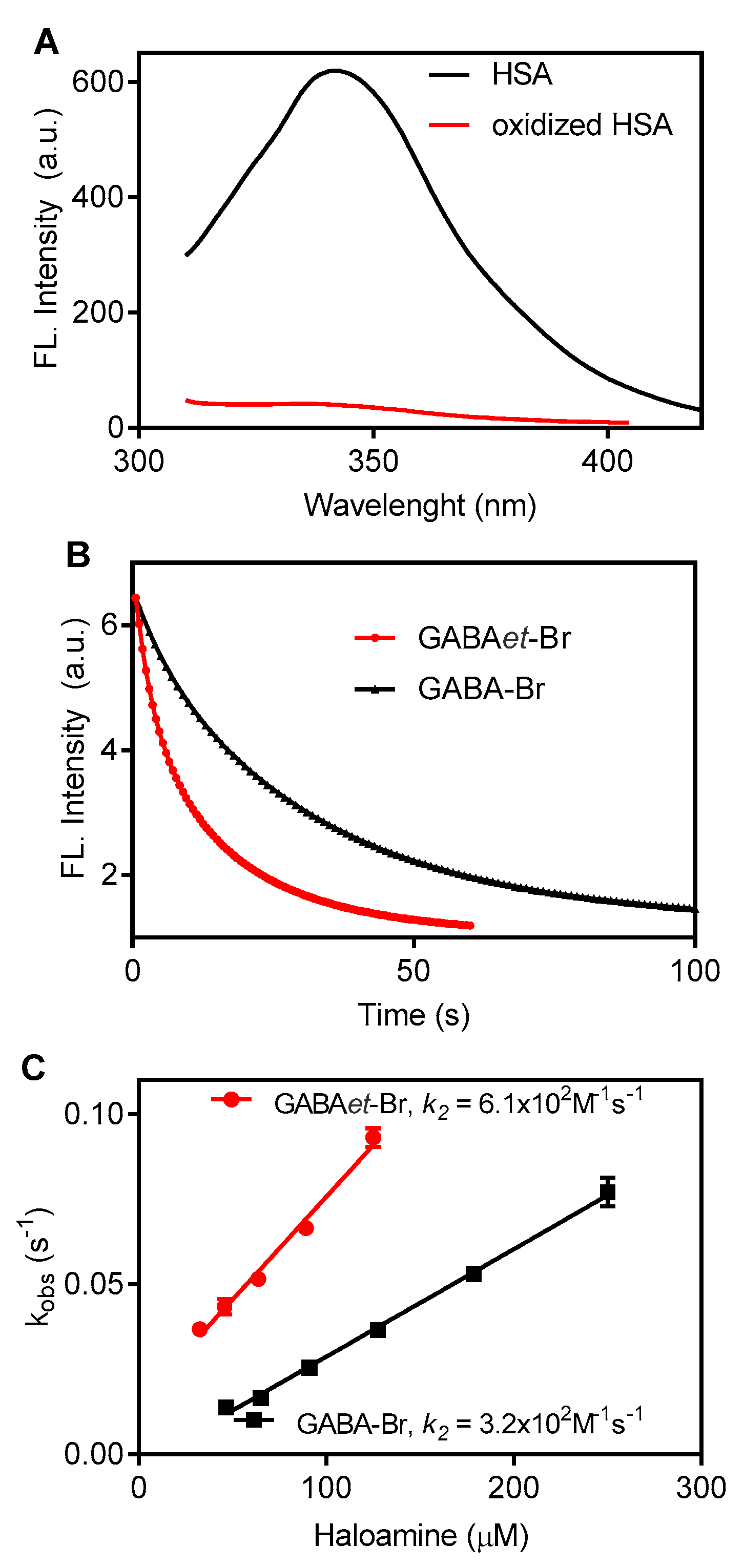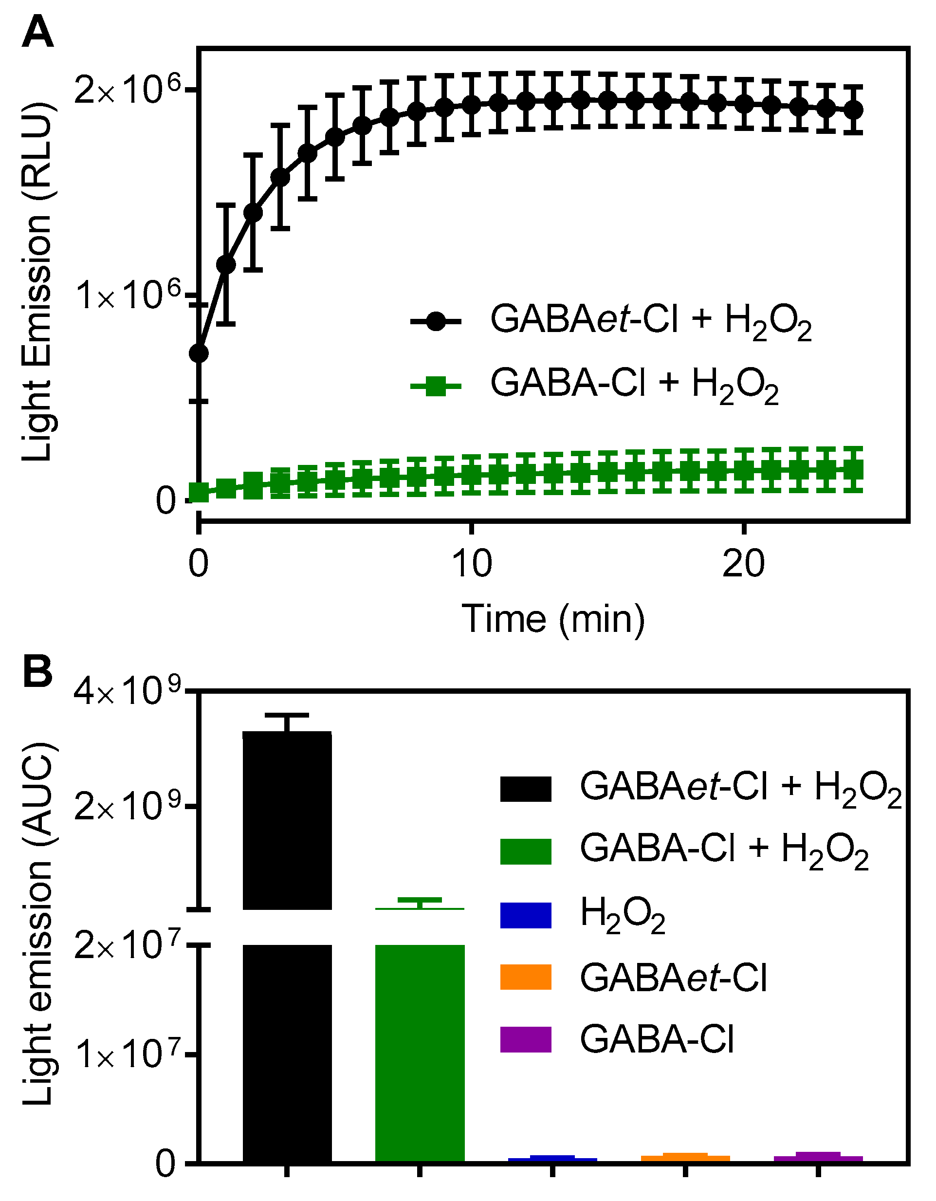 Chicago/Turabian StyleBertozo, Luiza de Carvalho, Markus Nagl, and Valdecir Farias Ximenes. 2025. "Haloamines of the Neurotransmitter γ-Aminobutyric Acid (GABA) and Its Ethyl Ester: Mild Oxidants for Reactions in Hydrophobic Microenvironments and Bactericidal Activity" Molecules 30, no. 21: 4227. https://doi.org/10.3390/molecules30214227